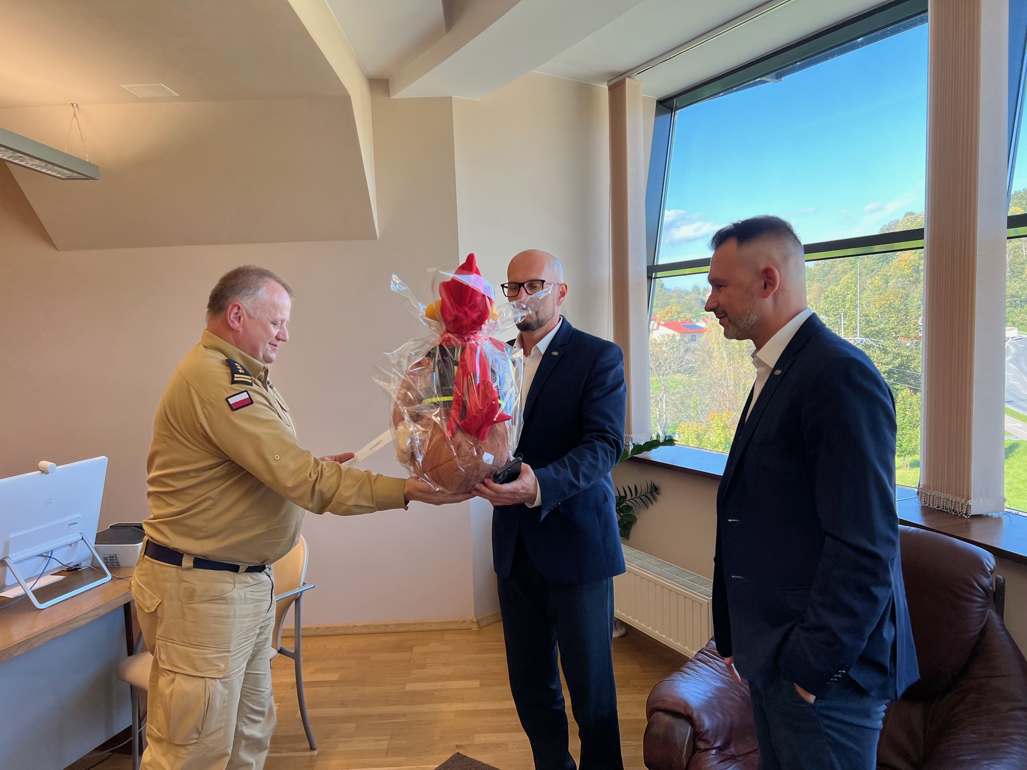 18 października delegacja z Działu Marketingu firmy „Koral” w składzie Kamil Bernady i Adam Nowakowski przekazała dla Komendy Miejskiej PSP w Nowym Sączu darwiznę rzeczową, którą był dron o wartości 29 tyś zł. Dron wykorzystany będzie podczas prowadzonych działań ratowniczo-gaśniczych, szczególnie przez specjalistyczne grupy funkcjonujące w Komendzie. Przekazany Dron DJI Mavic 3 Thermal posiada kamerę termowizyjną oraz maksymalne przybliżenie 56x. Na wyposażeniu jest dodatkowa bateria, skrzynia transportowa oraz system szybkiego ładowania. Dodatkowo w zestawie z dronem jest skrzynia z dodatkowym 10 calowym wyświetlaczem do podglądu terenu akcji przez osoby nie operujące dronem. Skrzynię wykonała firma DronaVista z Nowego Sącza, która realizowała dostawę drona.
