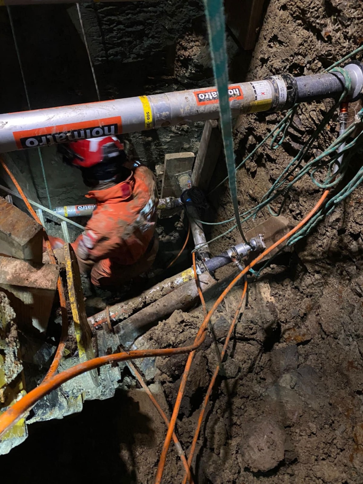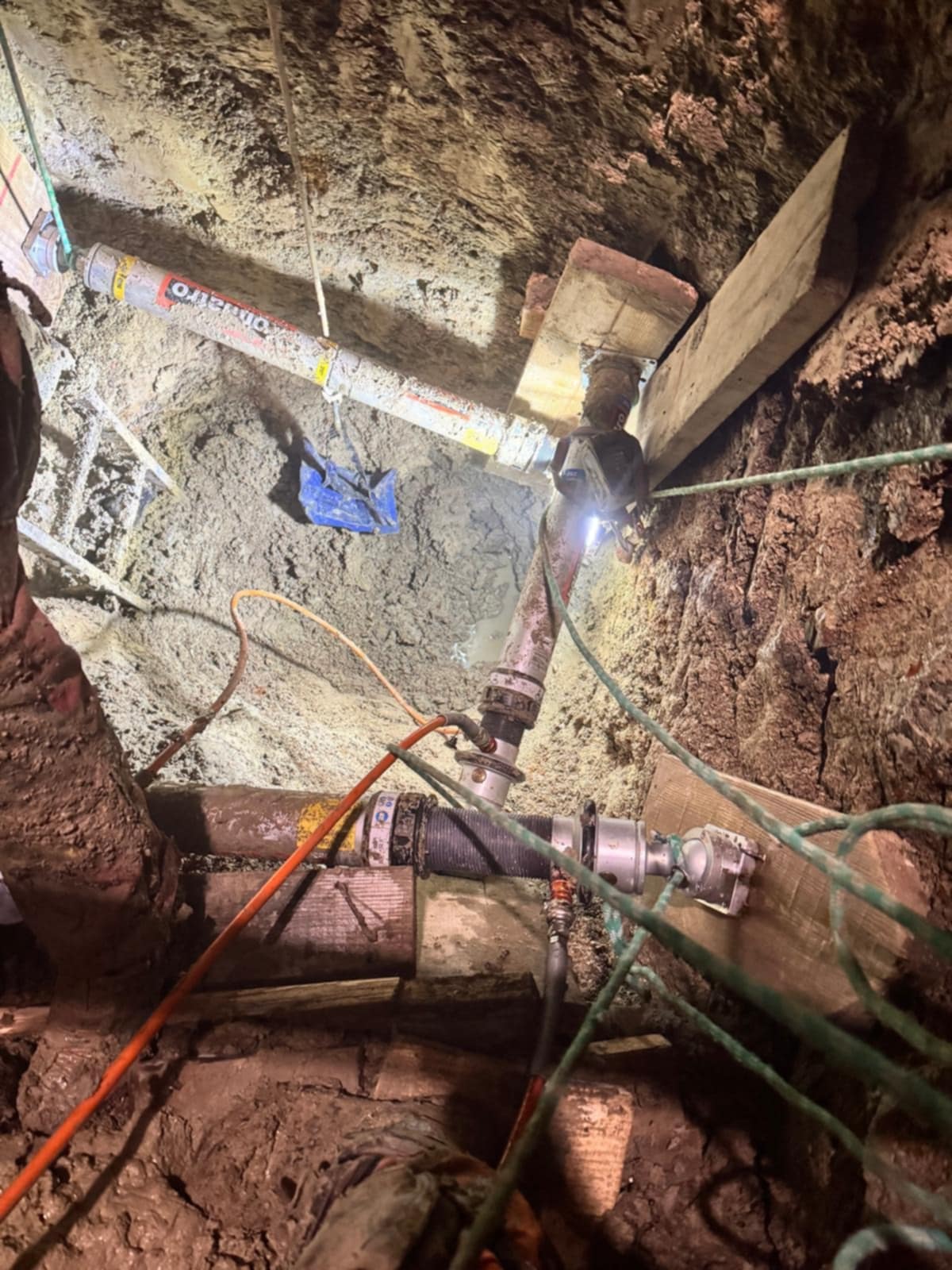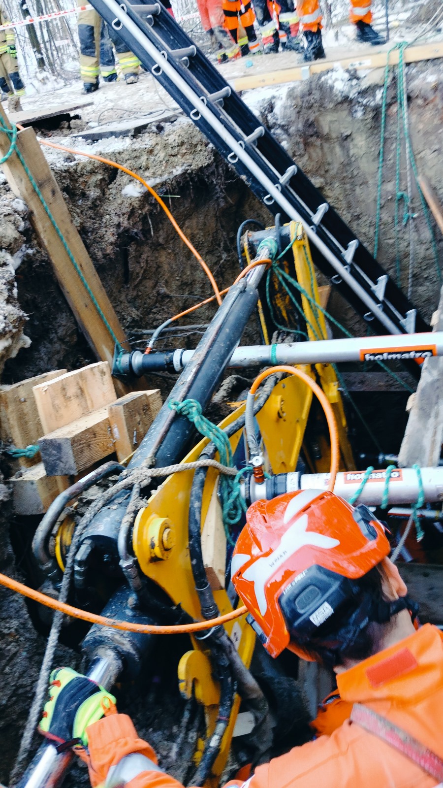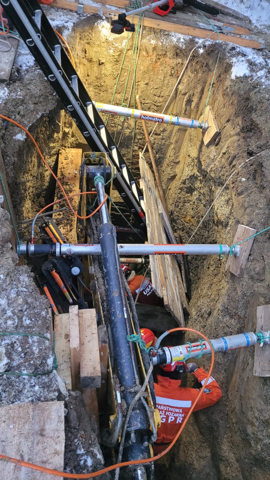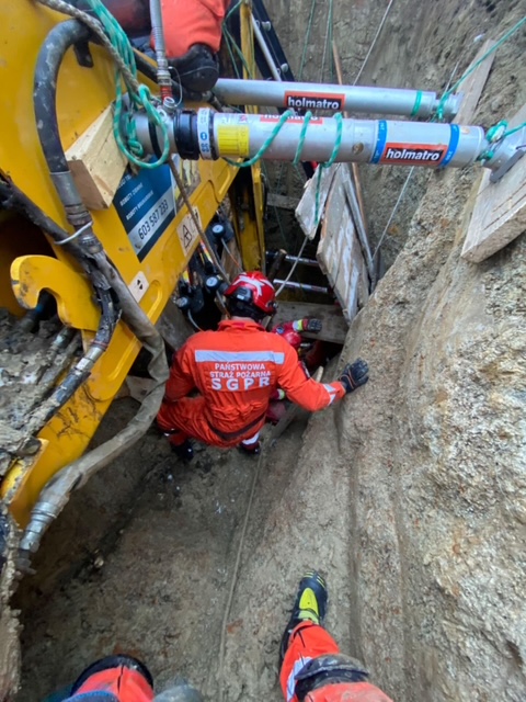 W trakcie prowadzonych działań przy poszkodowanym, prowadzona była bieżąca kontrola stabilności wykopu oraz kontrola pracujących elementów stabilizujących wykop.