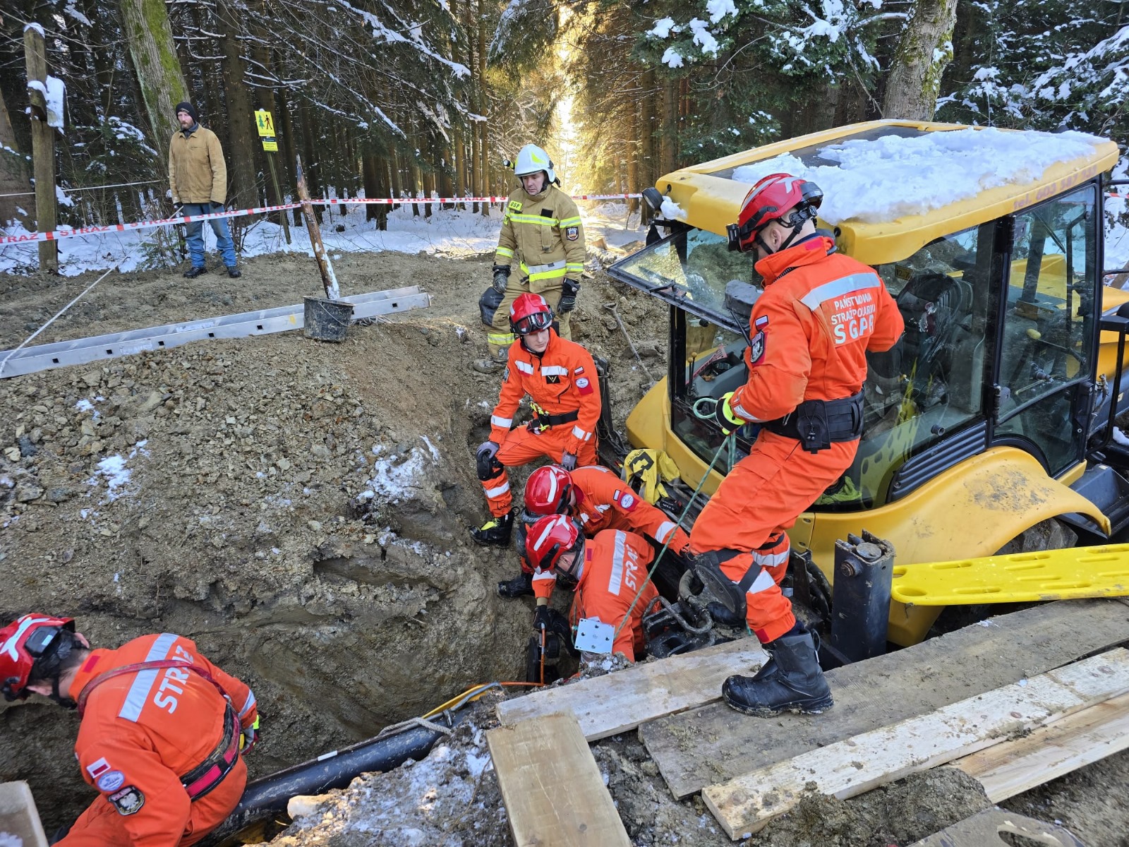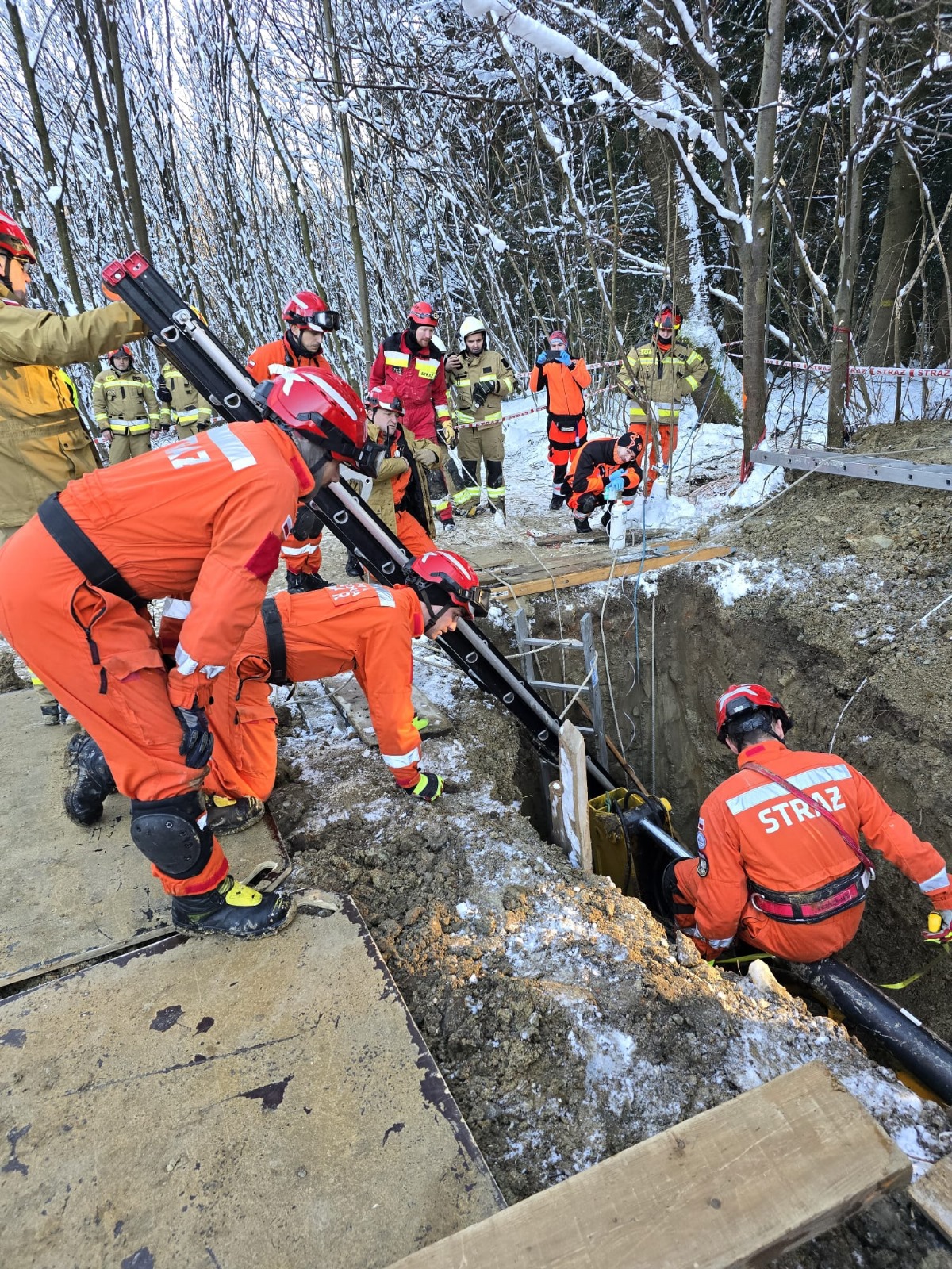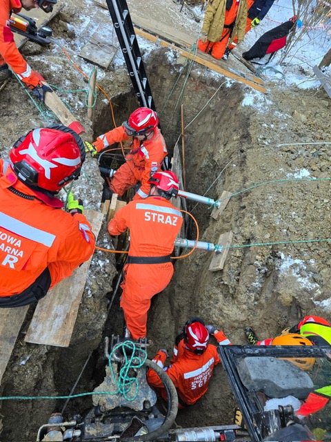 Do zdarzenia zadysponowana została SGPR Nowy Sącz, która w zakresie swojej specjalizacji posiada odpowiedni sprzęt oraz przeszkolonych ratowników z obszaru ratowania osób zasypanych w wykopach.
