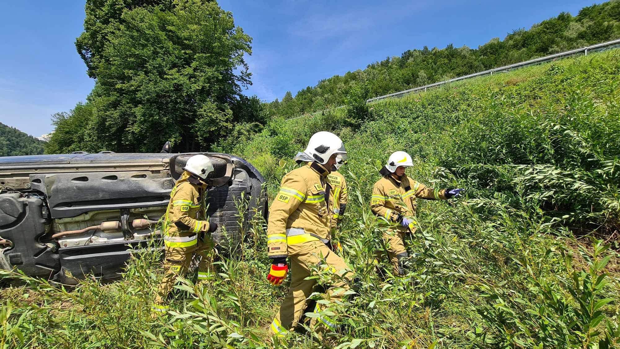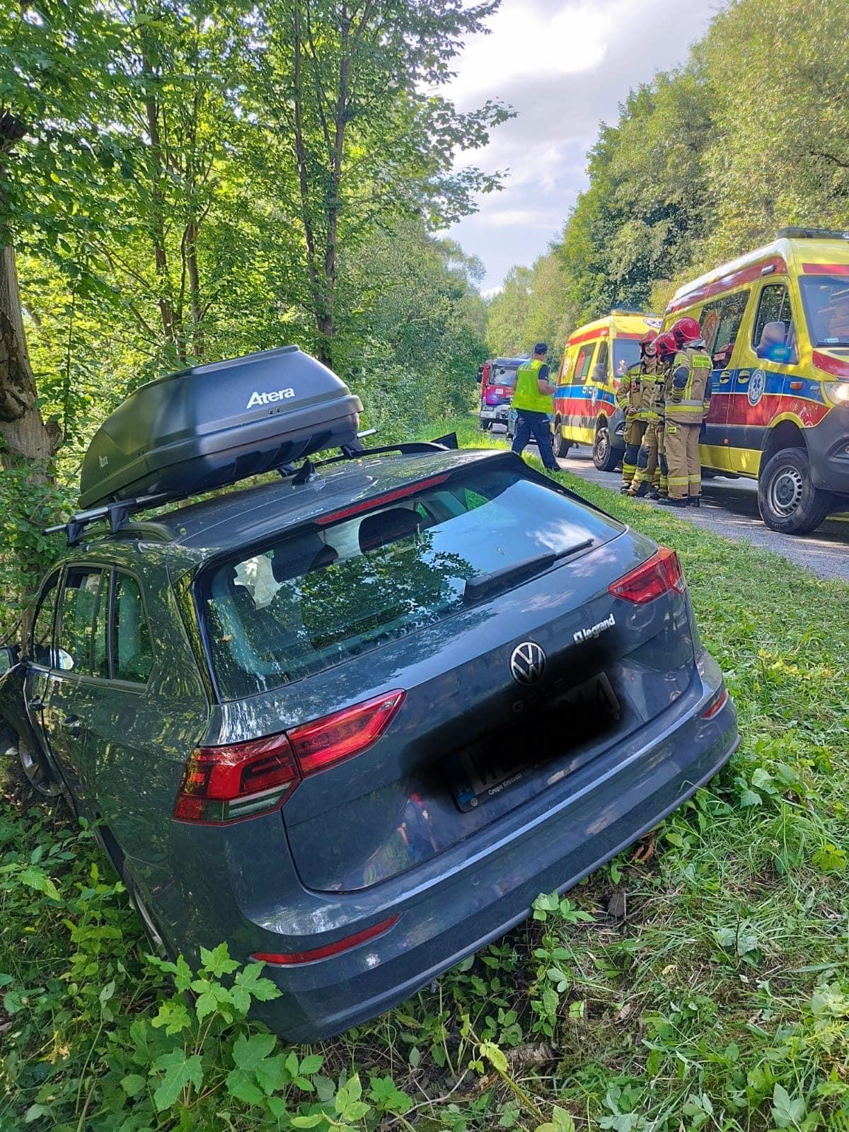 15 lipca przed południem strażacy PSP i OSP prowadzili działaniach w Zabrzeży gdzie samochód osobowy wypadł z drogi.