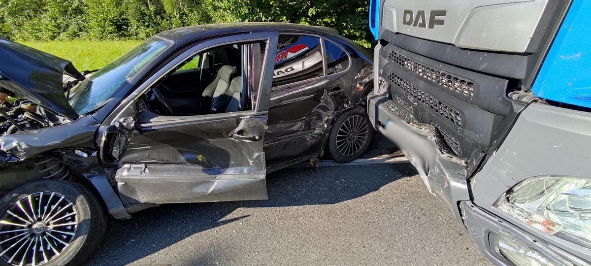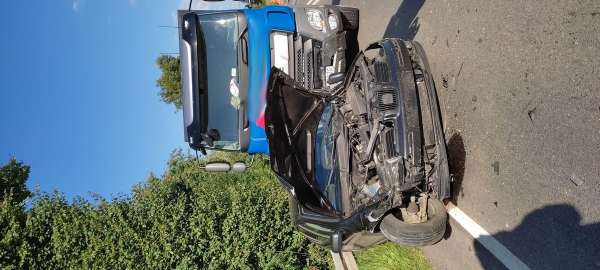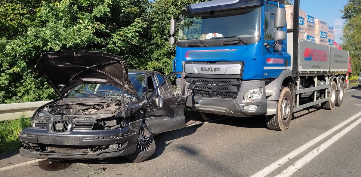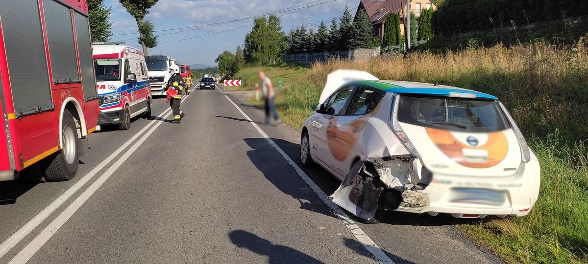 Frycowa - zderzenie samochodów osobowych i ciężarowego