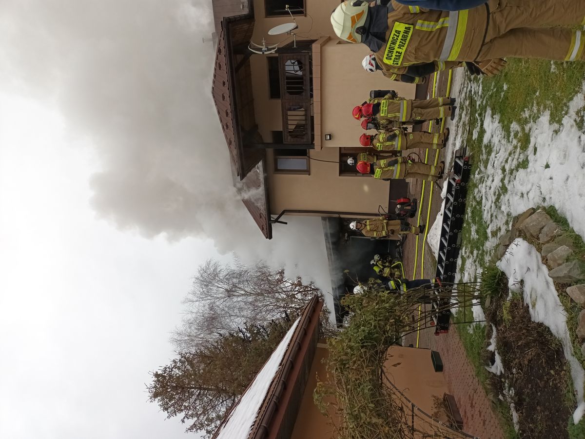 16 grudnia o godzinie 9.11 zastępy z JRG nr 2 w Nowym Sączu, OSP Gaboń, OSP Gołkowice Górne oraz OSP Kadcza zadysponowane zostały do działań w Gaboniu. Po przybyciu na miejsce pożaru ustalono, że pożarem objęty był garaż przylegający do budynku mieszkalnego jednorodzinnego. Pożarem objęty był cały garaż a ogień rozprzestrzeniał się w kierunku dachu budynku mieszkalnego. Mieszkanka opuściła obiekt przed przyjazdem straży pożarnej. Instalacja gazowa i elektryczna została odłączona. Działania strażaków polegały na zabezpieczeniu miejsca zdarzenia oraz podaniu prądów gaśniczych na palący się garaż. Wprowadzono strażaków z linią gaśniczą na poddasze budynku mieszkalnego w celu likwidacji zarzewi ognia na drewnianej konstrukcji dachu. Przeprowadzono prace rozbiórkowe części konstrukcji dachu garażu oraz budynku mieszkalnego w celu dogaszenia pożaru. Wodę do celów pożarowych dowożono pojazdami pożarniczymi z hydrantu. Pogorzelisko na bieżąco sprawdzano kamerą termowizyjną a pomieszczenia budynku miernikami wielogazowymi. Po zakończeniu działań gaśniczych na miejscu pozostał zastęp OSP Gaboń, który zabezpieczył rozebraną część dachu. Działania strażaków trwały ponad trzy godziny. Przyczyna pożaru jest nieustalona.