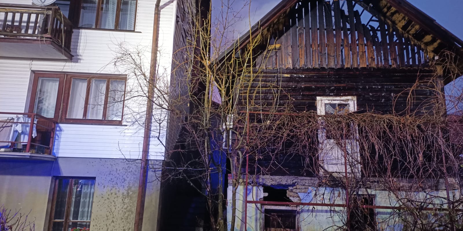 Głębokie - pożar drewnianego budynku, dwie osoby poszkodowane