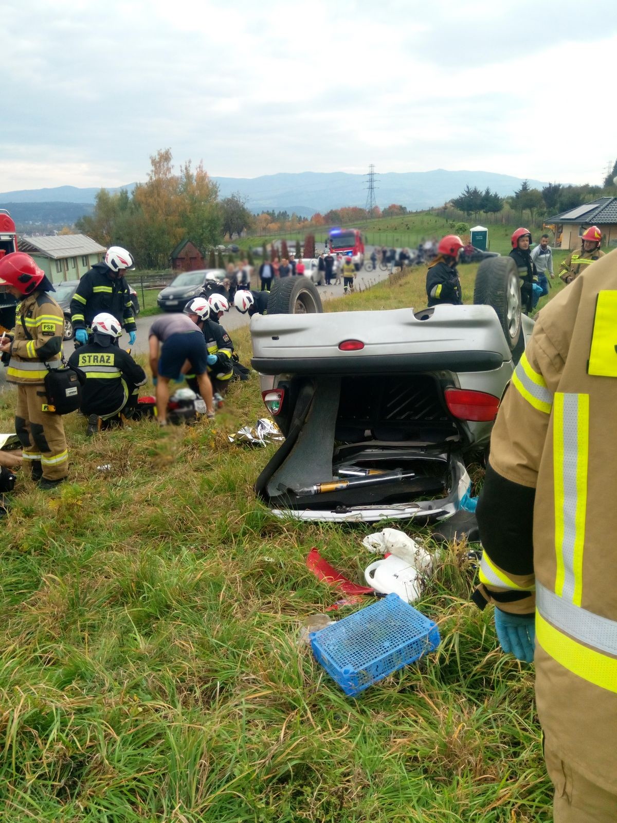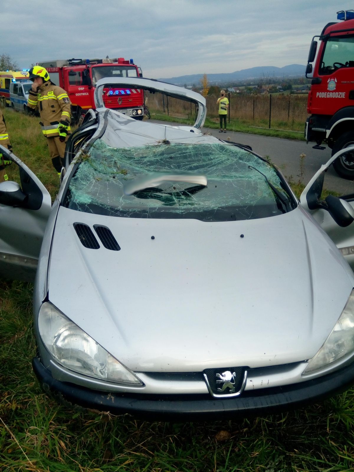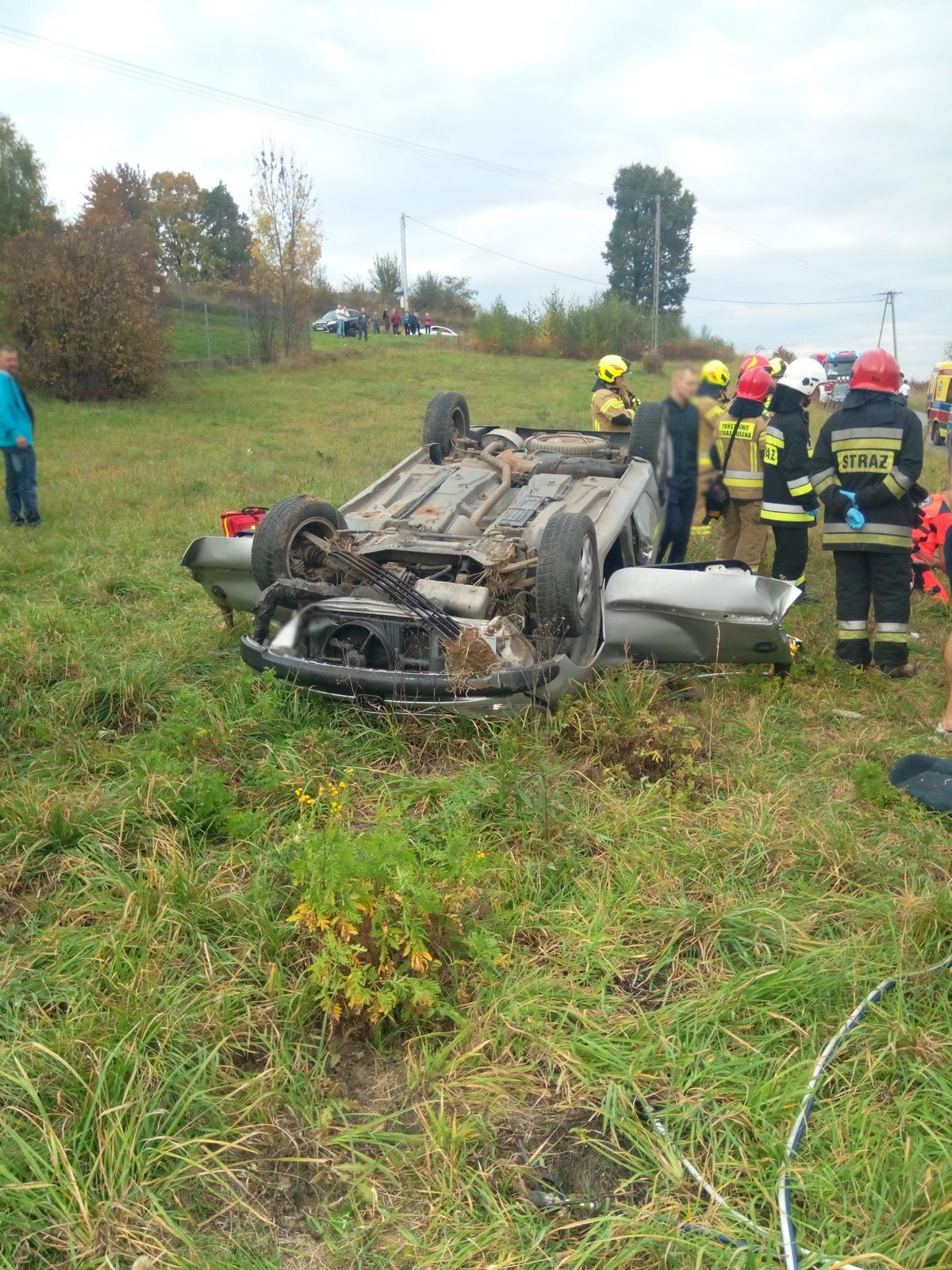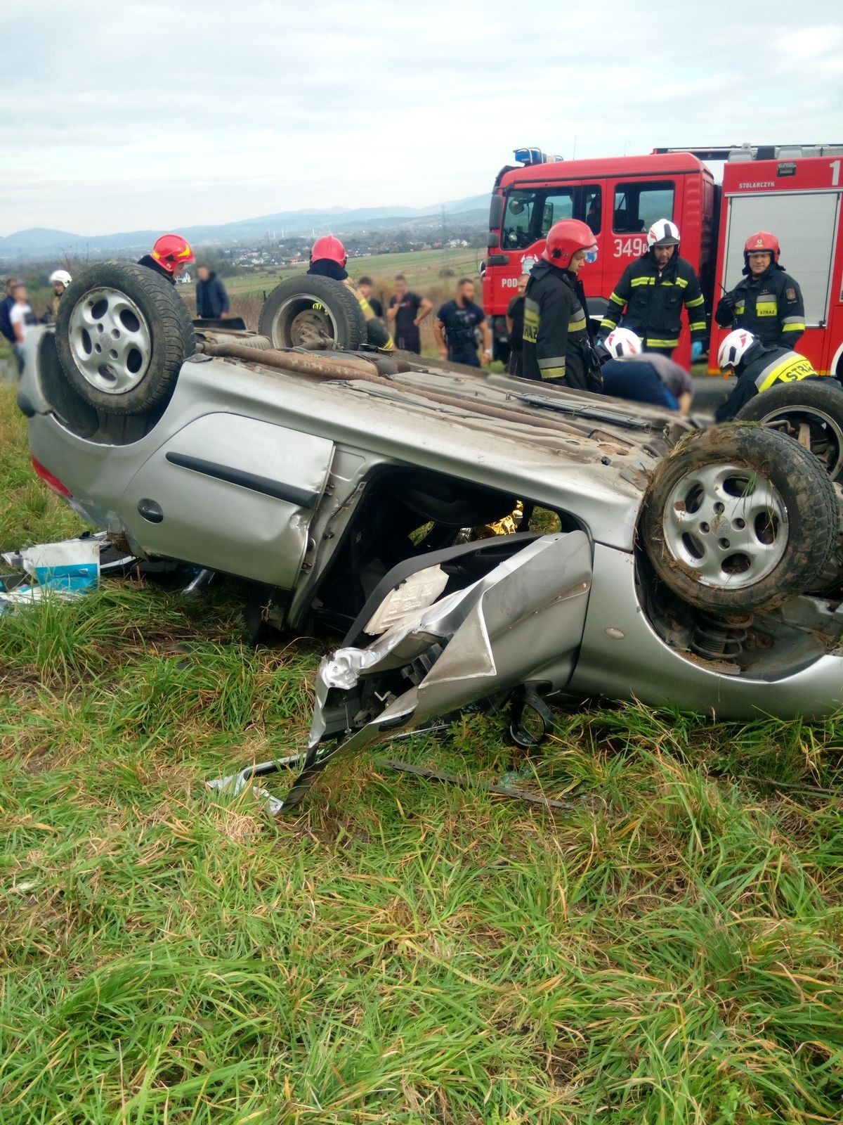 16 października o godzinie 14.32 zastępy z JRG nr 2 w Nowym Sączu, OSP Podegrodzie, OSP Stadła oraz OSP Gostwica zadysponowane zostały do działań w Gostwicy. Po przybyciu na miejsce zdarzenia ustalono, że kierujący samochodem osobowym z niewiadomych przyczyn stracił panowanie nad pojazdem i zjechał z drogi. Auto znajduje się na dachu na pobliskiej łące. Samochodem podróżowały dwie osoby, które były przytomne i zakleszczone w pojeździe. Działania strażaków polegały na zabezpieczeniu miejsca zdarzenia, odłączeniu klem akumulatora, wyciągnięciu kluczyka ze stacyjki, wykonaniu dostępu do poszkodowanych poprzez usunięcie drzwi od strony pasażera i kierowcy przy użyciu narzędzi hydraulicznych. Po wykonaniu dostępu do poszkodowanych, zostali oni przełożeni na nosze typu deska i wykonano szybkie badanie urazowe. Osoby poszkodowane zostały przekazane przybyłym załogom karetek Pogotowia Ratunkowego. Na czas prowadzenia działań oba pasy jezdni zostały zablokowane. Działania strażaków trwały godzinę.