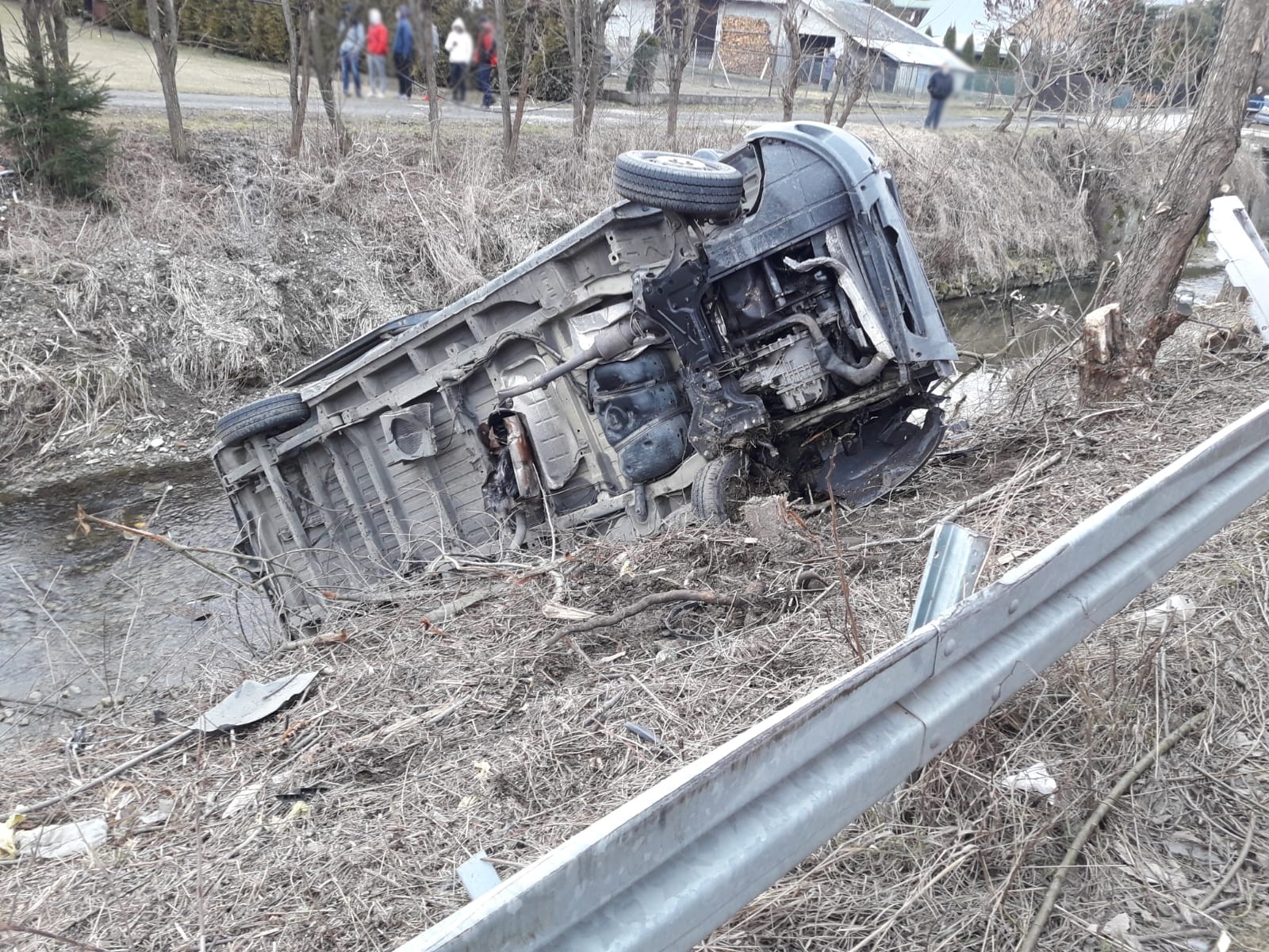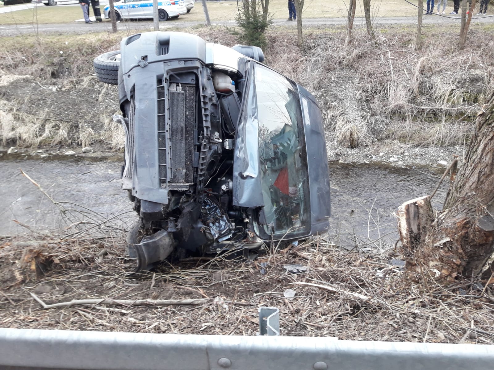 21 marca około godziny 16.38 zastępy z JRG nr 2 w Nowym Sączu, OSP Gostwica oraz OSP Brzezna zadysponowane zostały do działań w Gostwicy. Po przybyciu na miejsce zdarzenia ustalono, że doszło do zderzenia samochodu Fiata Ducato z drzewem w wyniku czego pojazd znajdował się na boku przy korycie potoku. Na miejscu znajdowała się Policja oraz karetka Pogotowia ratunkowego. Samochodem podróżowała kobieta z trójką dzieci. Wszyscy opuścili pojazd i znajdowali się pod opieką ratowników Pogotowia Ratunkowego w pobliskim domu. Działania strażaków polegały na zabezpieczeniu miejsca zdarzenia oraz sprawdzeniu czy pojazd nie ma wycieków. Wycieków nie stwierdzono. Ze względu na czynności prowadzone przez Policję nie odłączono klem akumulatora w pierwszej fazie działań. Kobieta kierująca pojazdem oraz dzieci zostały przetransportowane do szpitala. Na miejscu zdarzenia pozostała Policja oraz zastęp OSP do oświetlenia miejsca zdarzenia.