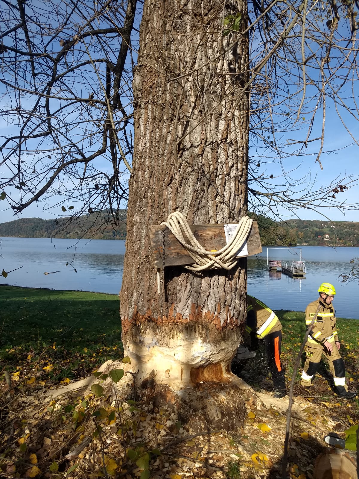 24 października o godzinie 9.19 zastępy z JRG nr 1 w Nowym Sączu oraz OSP Gródek nad Dunajcem zadysponowane zostały do działań w Gródku nad Dunajcem. Po przybyciu na miejsce zdarzenia stwierdzono, że na działce znajdowała się topola czarna podgryziona przez bobry i stwarzała ona zagrożenie dla użytkowników drogi wojewódzkiej nr 975. Działania zastępów straży polegały na zabezpieczeniu miejsca zdarzenia oraz zablokowaniu jednego pasa ruchu z uwagi na konieczność rozstawienia podnośnika. Wahadłowo kierowaniu ruchem drogowym. Drzewo obalono w kierunku jeziora. Działania strażaków trwały ponad dwie godziny.