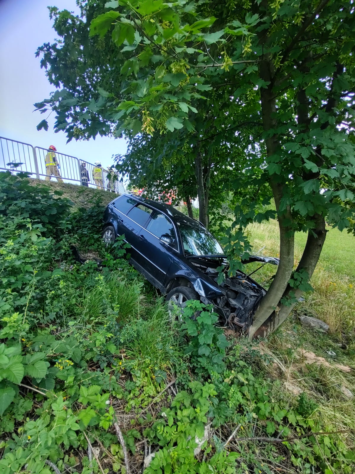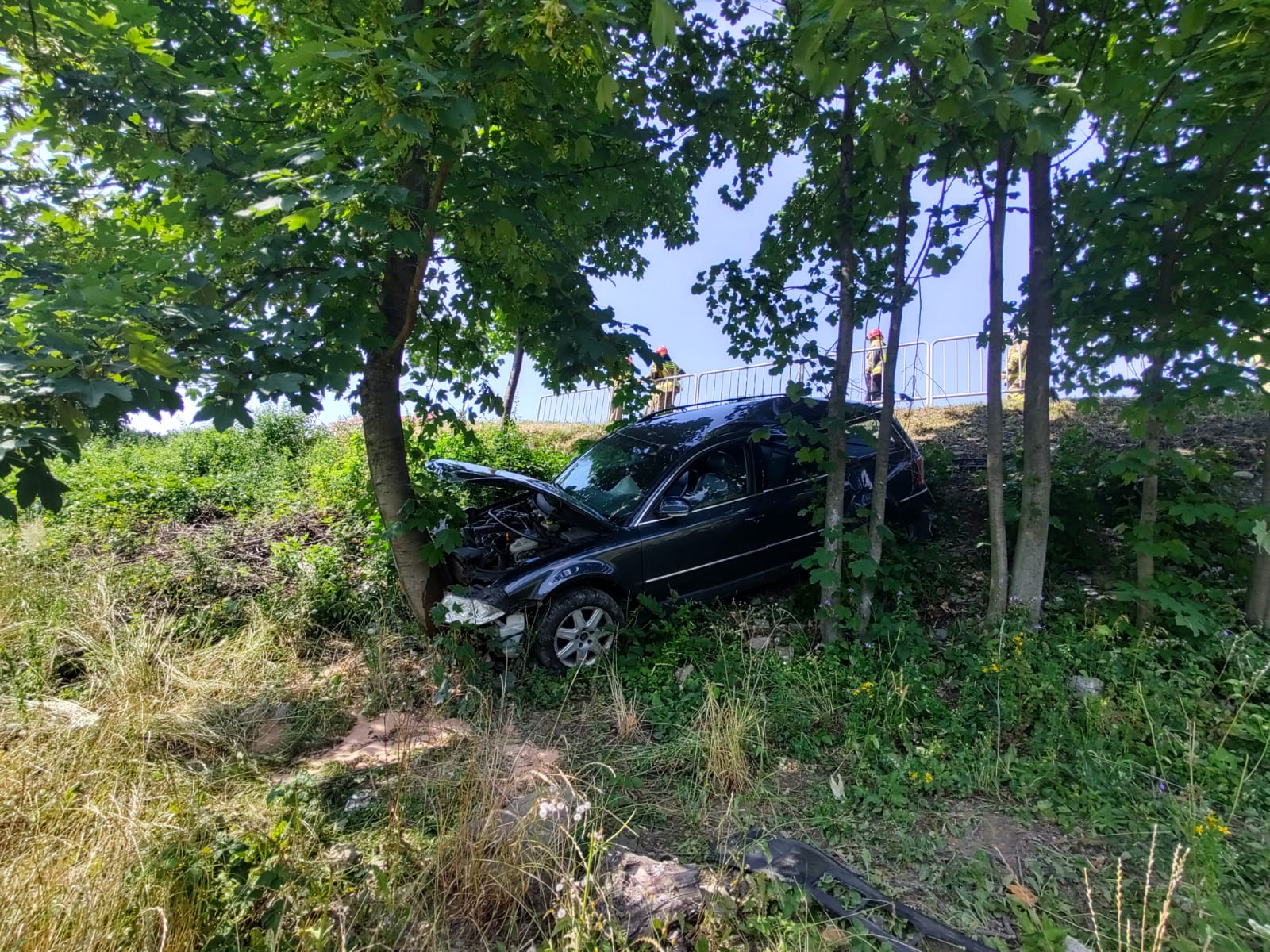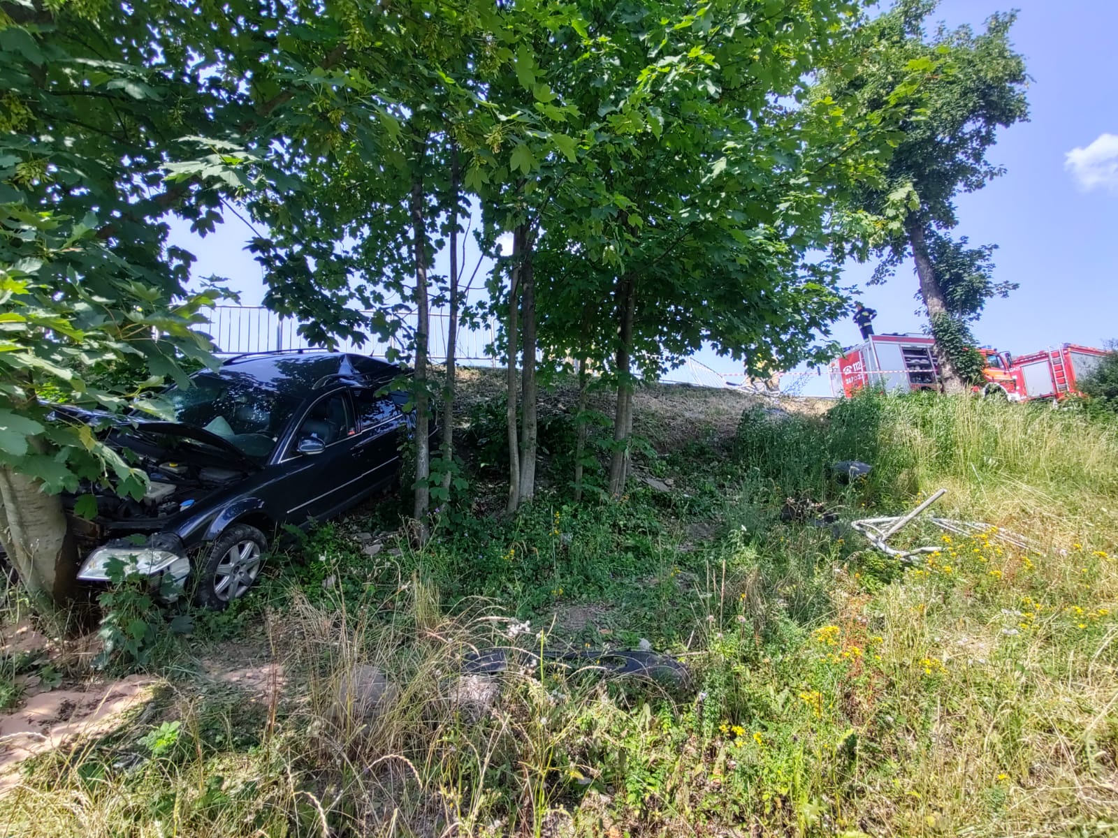 30 czerwca zastępy z JRG nr 1 w Nowym Sączu, OSP Grybów Biała oraz OSP Gródek zadysponowane zostały do działań w Grybowie. Po przybyciu na miejsce zdarzenia ustalono, że na DK 28 z niewyjaśnionych przyczyn doszło do wypadnięcia z drogi samochodu osobowego, który następnie uderzył w drzewo znajdujące się na przydrożnej skarbie. Samochodem podróżowała jedna osoba. Równocześnie z pierwszym zastępem na miejsce zdarzenia przybyła karetka Pogotowia Ratunkowego, której ratownicy udzielili pomocy medycznej osobie biorącej udział w zdarzeniu. Pojazd znajdował się poza drogą. Nastąpił wyciek płynów eksploatacyjnych z samochodu. Działania strażaków polegały na zabezpieczeniu miejsca zdarzenia, odpięciu klem od akumulatora w uszkodzonym pojeździe oraz wykonaniu sorpcji rozlanych płynów eksploatacyjnych. Osoba uczestnicząca w zdarzeniu po przebadaniu pozostała na miejscu zdarzenia. Teren wokół uszkodzonego pojazdu zabezpieczono taśmą. Działania strażaków trwały godzinę.