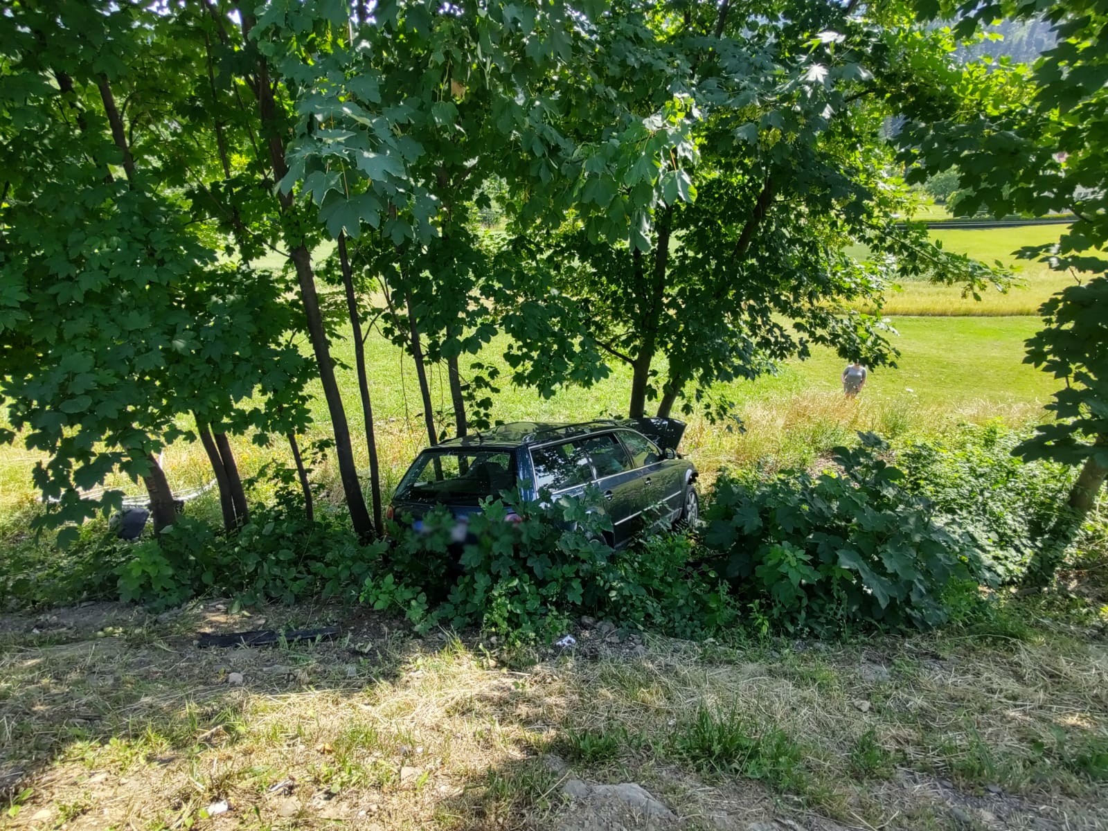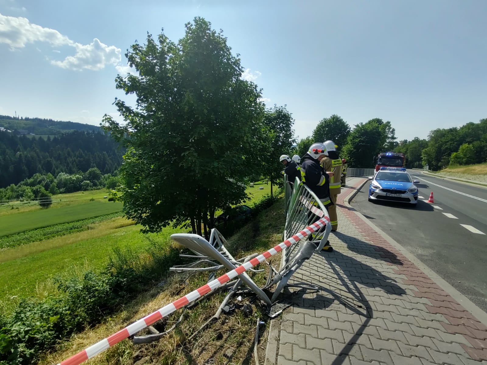 Grybów - Sośnie Dolne - samochód osobowy wypadł z drogi