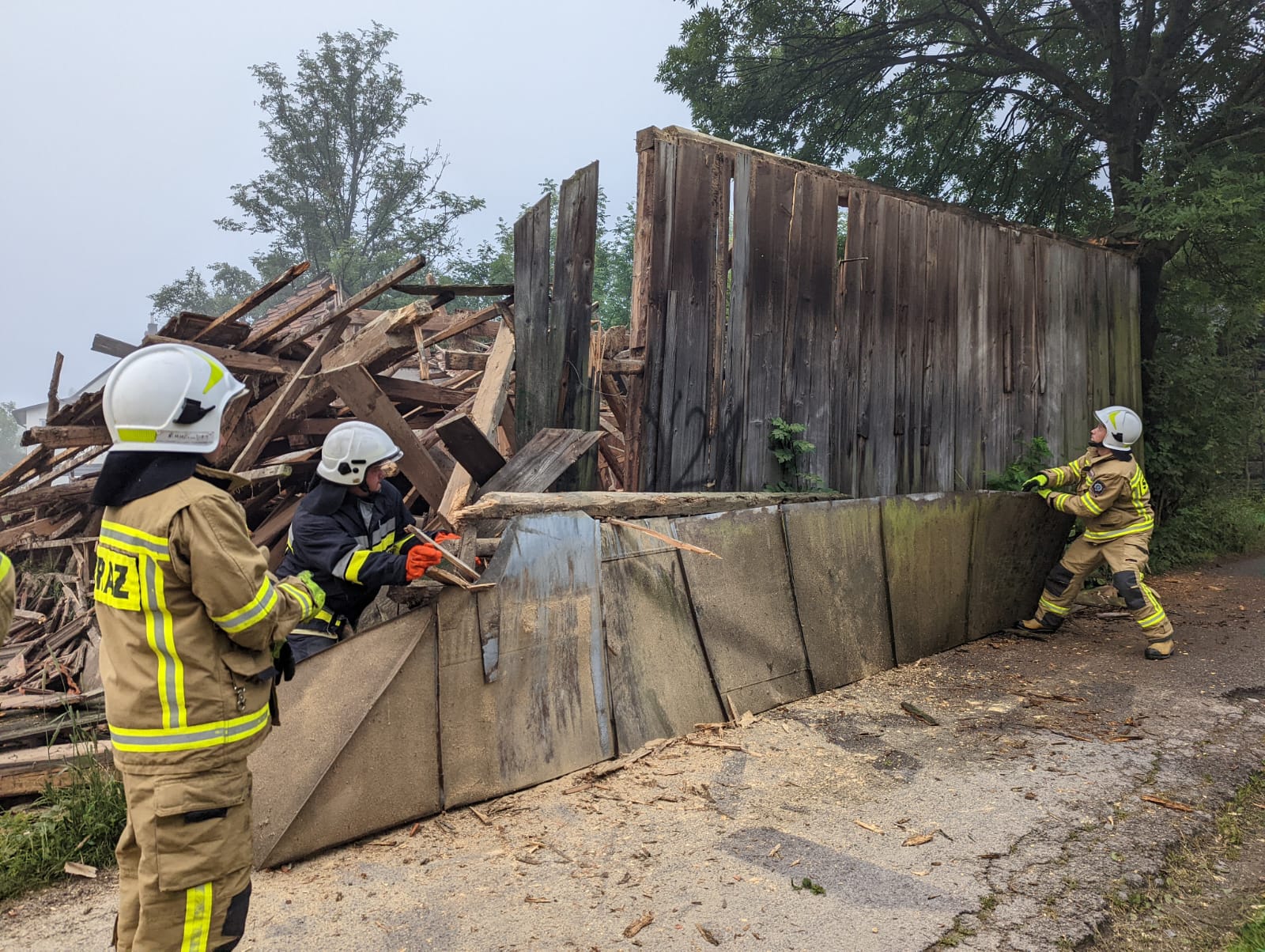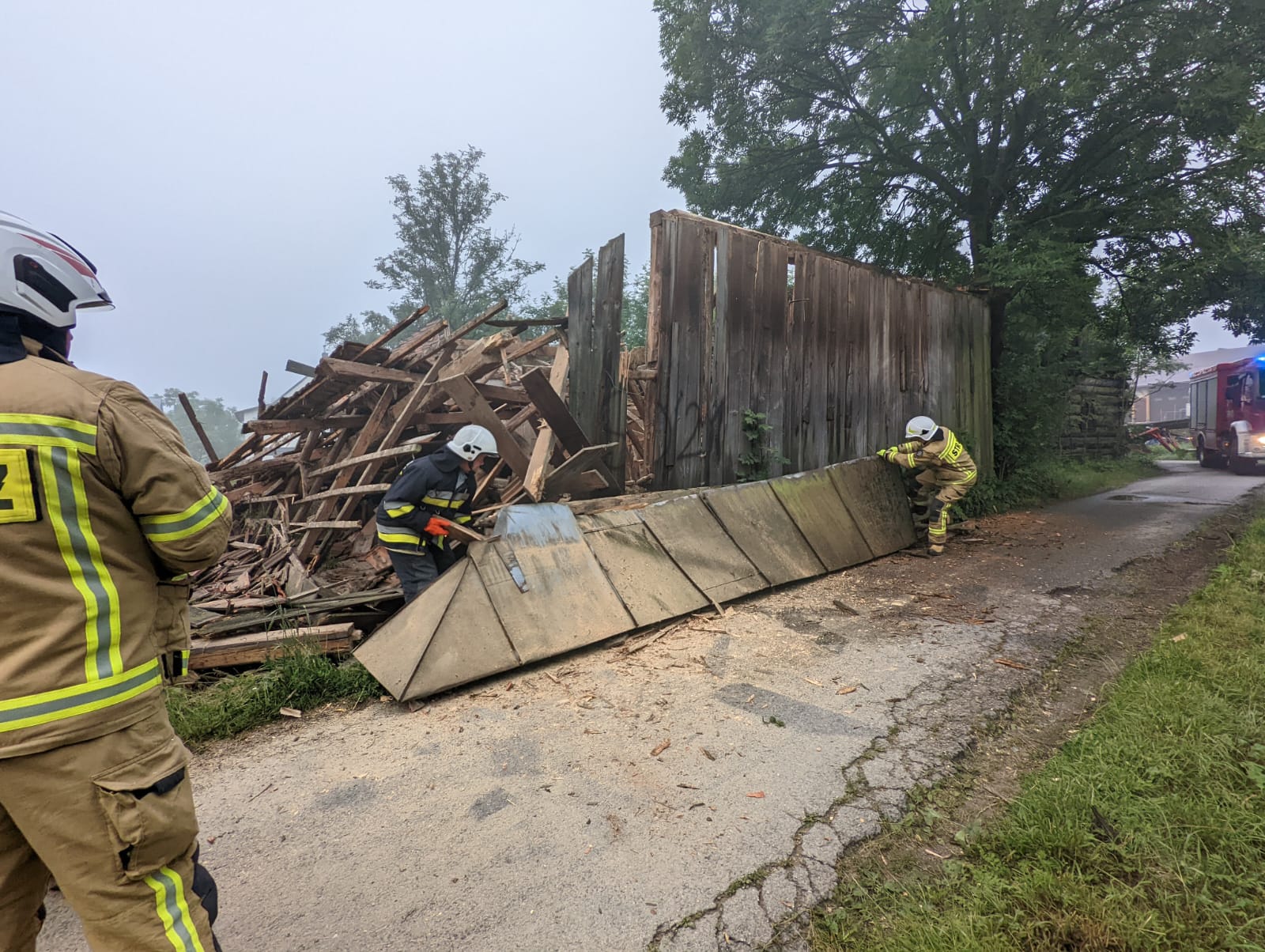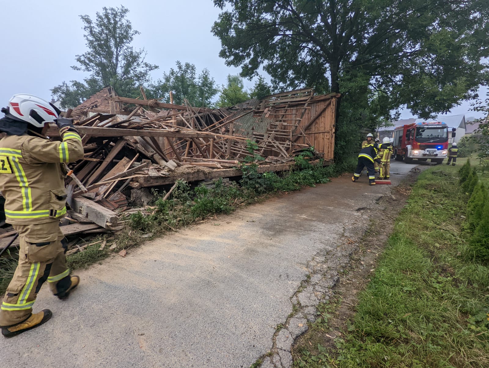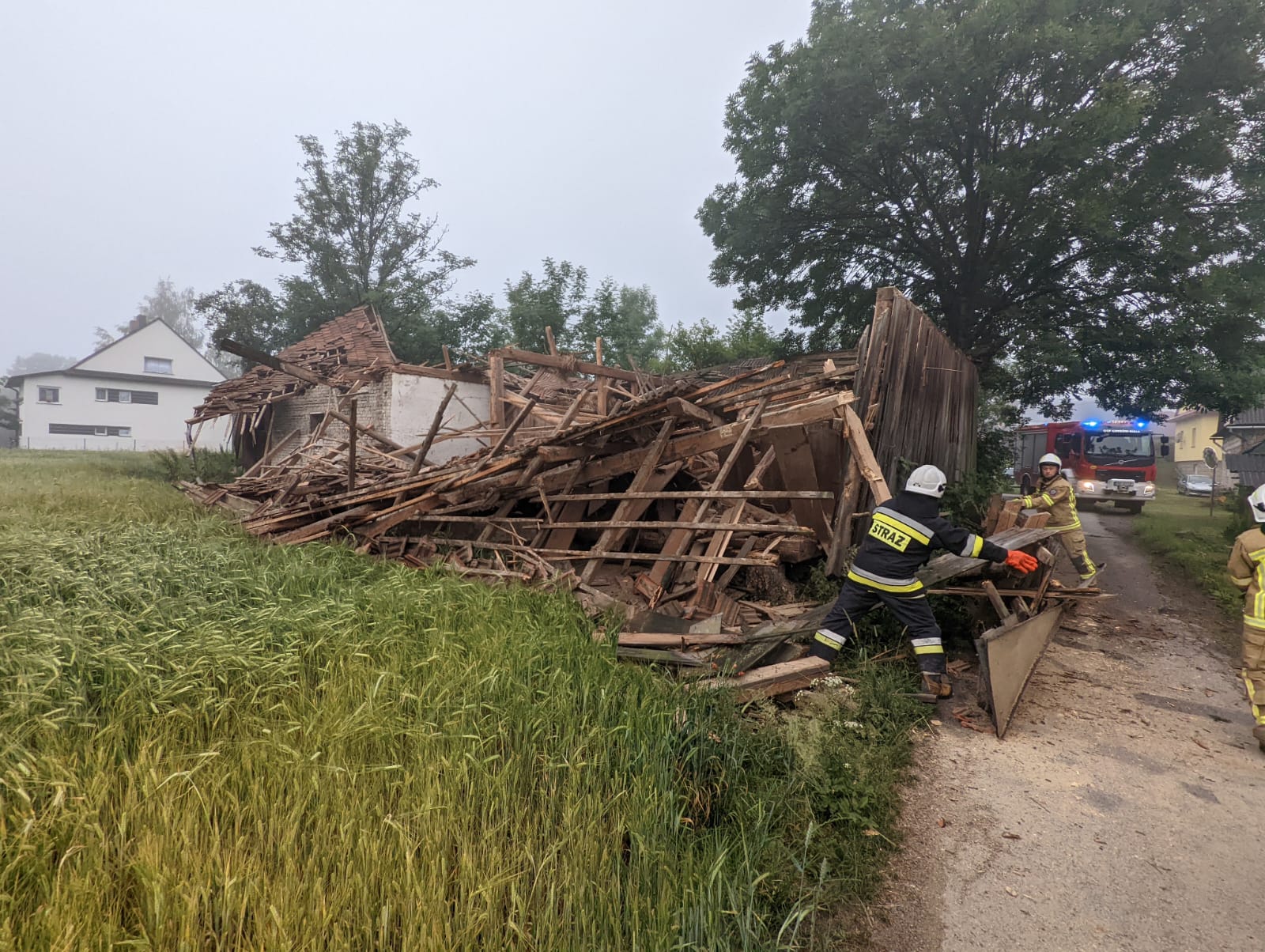 28 czerwca oraz ranek 29 czerwca był pracowity dla strażaków w Grybowie którzy prowadzili kilka działań ratowniczych. 28 czerwca o godzinie 15.11 usuwano powalone drzewo z drogi na ulicy Równie. O godzinie 15.30 przy ulicy Kolejowej wypompowywano wodę z rozlewiska, które utworzyło się po opadach deszczu przed sklepem. O godzinie 16.34 przy ulicy Moniuszki ze względu na brak prądu wystąpiła potrzeba zasalania respiratora przy użyciu agregatu prądotwórczego. O godzinie 18.23 przy ulicy Kościuszki strażacy usuwali plamę substancji ropopochodnej z drogi, która rozciągała się na długości kilkuset metrów. Natomiast 29 czerwca o godzinie 5.11 strażacy zostali zadysponowaniu do zabezpieczenia naruszonej konstrukcji opuszczonego budynku, która groziła zawaleniem na osiedlu Biała Wyżna. Strażacy usunęli elementy dachu budynku z drogi oraz rozebrali pochyloną ścianę.