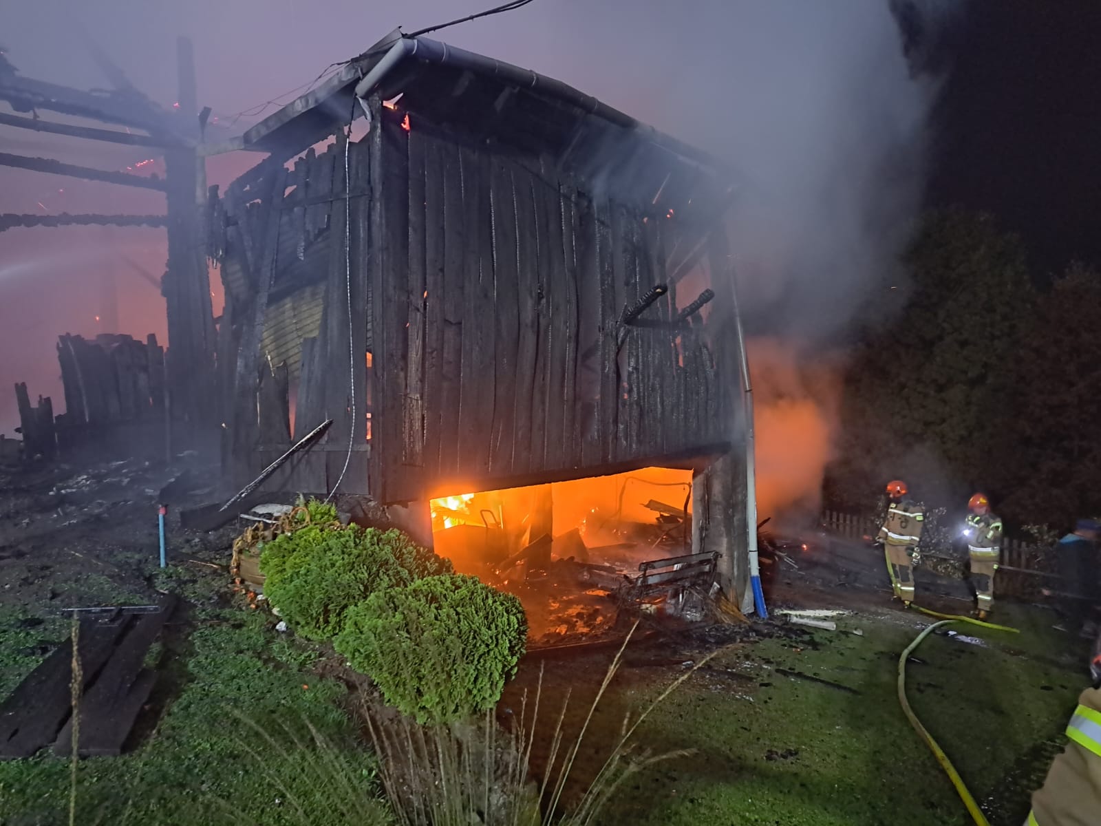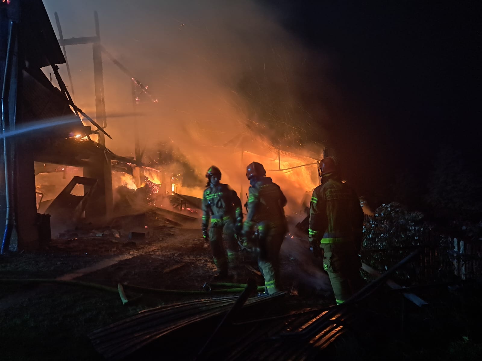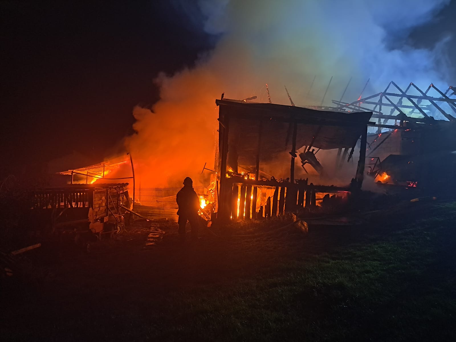6 października o godzinie 0.50 zastępy z JRG nr 1 w Nowym Sączu, OSP Grybów Biała, OSP Biała Niżna, OSP Ptaszkowa oraz OSP Kąclowa zadysponowane zostały do działań na osiedlu Biała Wyżna w Grybowie. Po przybyciu na miejsce zdarzenia ustalono, że w pełni rozwinięty był pożar budynku inwentarsko-gospodarczego. W odległości kilka metrów znajdował się murowany budynek mieszkalny a w odległości kilkunastu metrów znajdował się kolejny drewniany budynek gospodarczy. Działania strażaków polegały na zabezpieczeniu miejsca zdarzenia, rozłączeniu napięcia elektrycznego w skrzynce bezpiecznikowej w budynku mieszklanym, wyłączeniu falownika instalacji PV oraz podano prądy wody w natarciu na palący się obiekt i w obronie na budynki zagrożone. Dalsze działania polegały na zorganizowaniu dostarczania wody poprzez dowożenie z rzeki Biała. Nadpalone elementy konstrukcyjne dachu usunięto przy pomocy pilarki spalinowej i podręcznego sprzętu burzącego. Wykonano niezbędne prace rozbiórkowe. Kontrolowano budynki przy pomocy kamery termowizyjnej. Działania ratowniczo-gaśnicze 10 zastępów i 43 strażaków trwały pięć godzin.