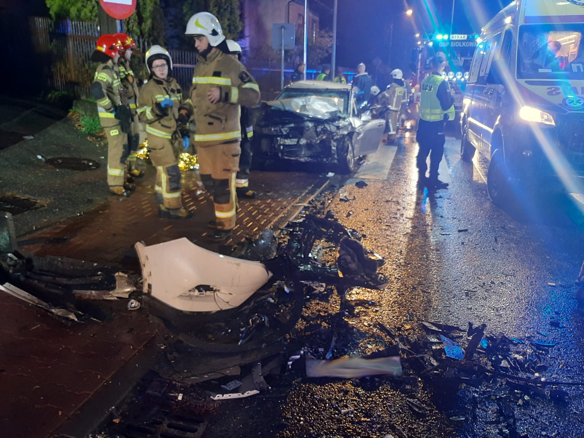 5 listopada o godzinie 16.39 zastępy z JRG nr 1 w Nowym Sączu, OSP Grybów Biała oraz OSP Siołkowa zadysponowane zostały do działań w Grybowie na ulicę Kazimierza Wielkiego. Po przybyciu zastępów straży na miejsce zdarzenia równocześnie z karetkami Pogotowia ratunkowego ustalono, że doszło do zderzenia samochodów osobowych Nissan i Honda. Samochodem Nissan podróżowała jedna osoba, która znajdowała się w pojeździe a ratownik medyczny udzielał jej pomocy. Samochodem Honda podróżowały trzy osoby. Dostęp do kierowcy był utrudniony ze względu na zniekształcone drzwi, których nie można było otworzyć. Ratownik medyczny udzielał pomocy osobom będącym w pojeździe. Z samochodów nastąpił wyciek płynów eksploatacyjnych. Ruch na drodze był zablokowany. Działania strażaków polegały na zabezpieczeniu miejsca zdarzenia oraz oświetleniu terenu działań. Przy pomocy narzędzi hydraulicznych wykonano dostęp do kierowcy samochodu Honda. Strażacy udzielili pomocy ratownikom medycznym Pogotowia Ratunkowego w udzielaniu pomocy poszkodowanym oraz transporcie ich do karetek pogotowia. Rozłączono instalacje elektryczne w pojazdach. Rozłączono instalacje LPG w samochodzie Honda. Dokonano sorpcji rozlanych płynów eksploatacyjnych. Policja wyznaczyła objazdy. Wszyscy uczestnicy zdarzenia zabrani zostali do szpitala. Na miejscu zdarzenia pozostał zastęp z OSP Grybów. Po dokonaniu czynności wyjaśniających okoliczności zdarzenia, jeden z samochodów zepchnięto na pobocze co umożliwiło wprowadzenie ruchu wahadłowego. Drugi pojazd został zabrany przez pomoc drogową. Uprzątnięto elementy powypadkowe z jezdni. Działania strażaków trwały trzy godziny.