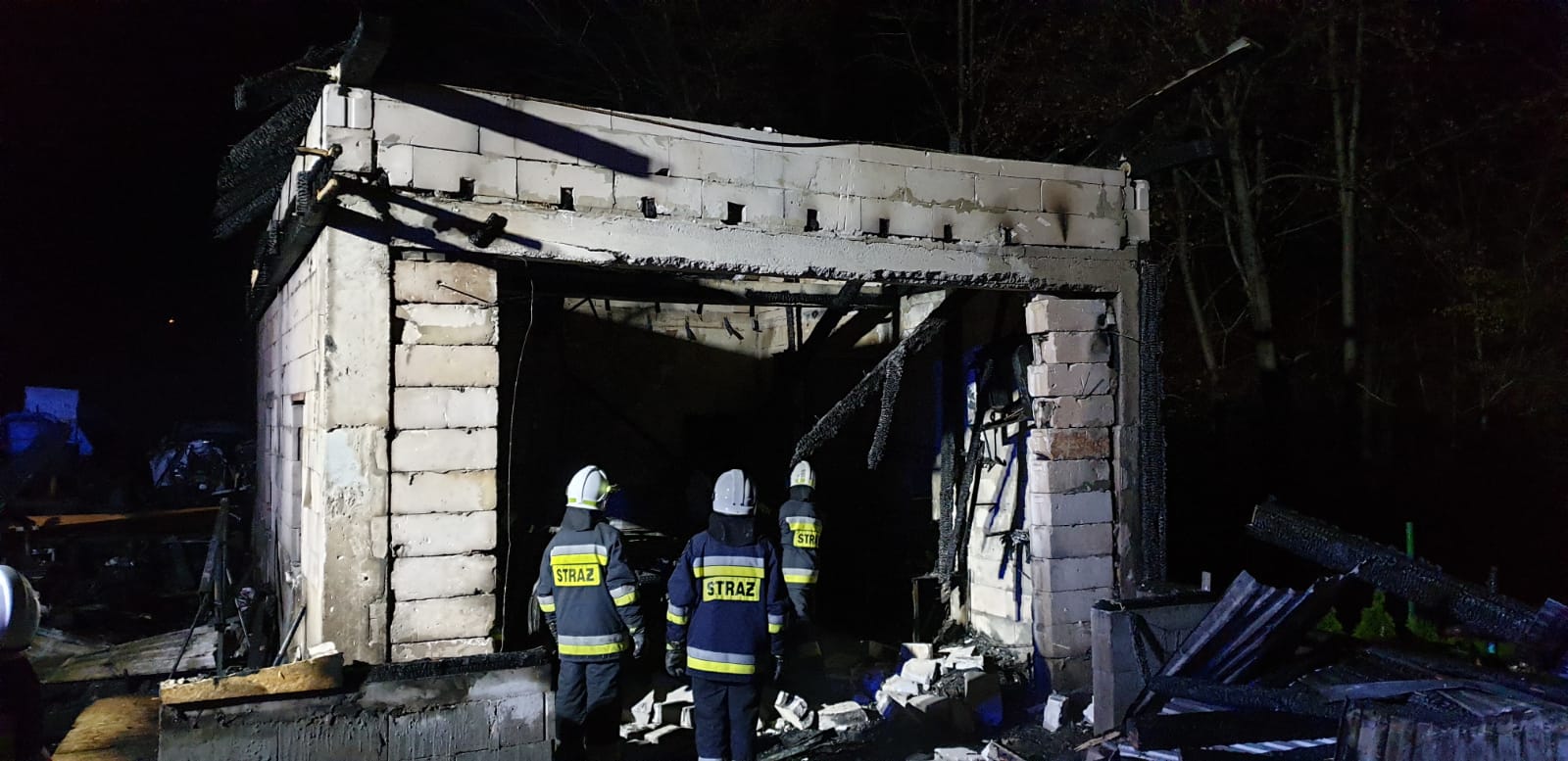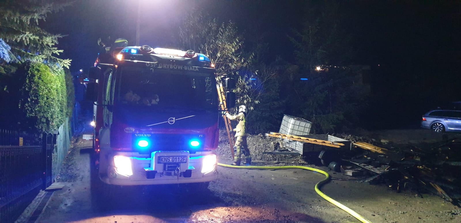 Grybów, ul. Szkolna - pożar garażu z warsztatem
