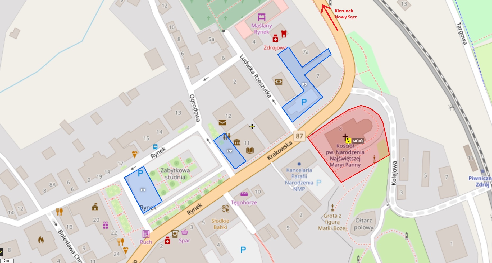Zdjęcia z mapami Piwnicznej Zdrój i miejscami parkingowymi zostały zamieszczone poniżej.