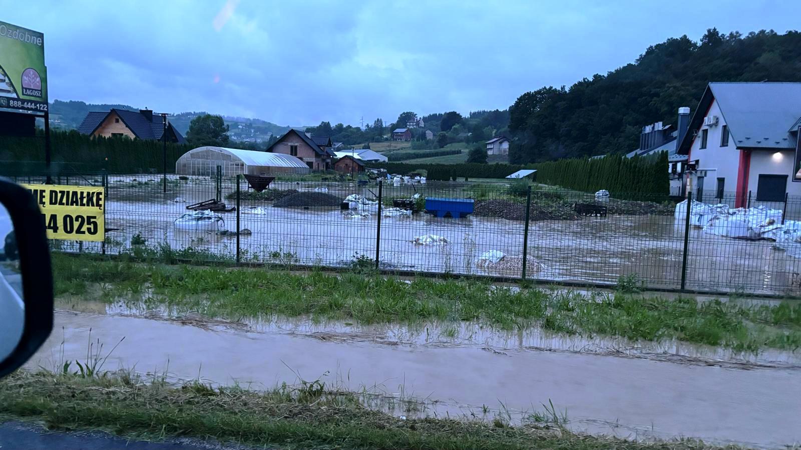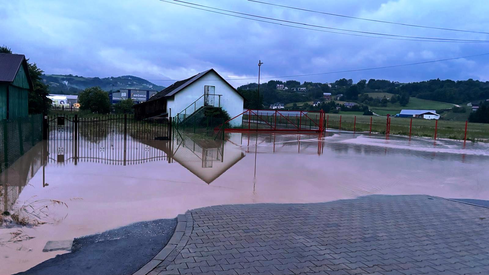 -Łososina Dolna - zalana posesja przy budynku mieszkalnym