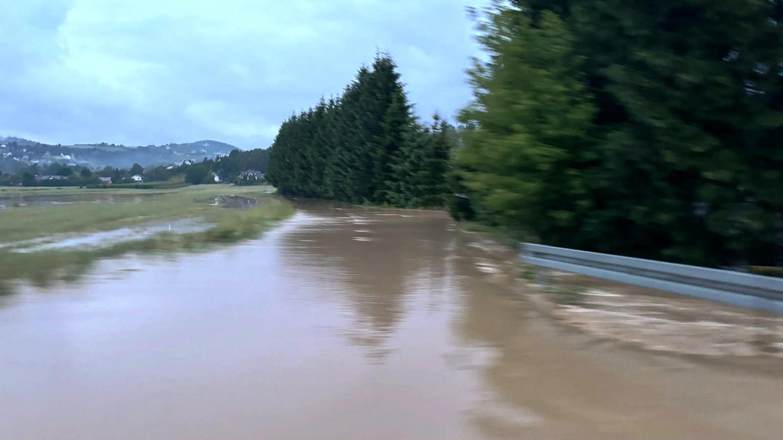 -Rożnów zalana droga