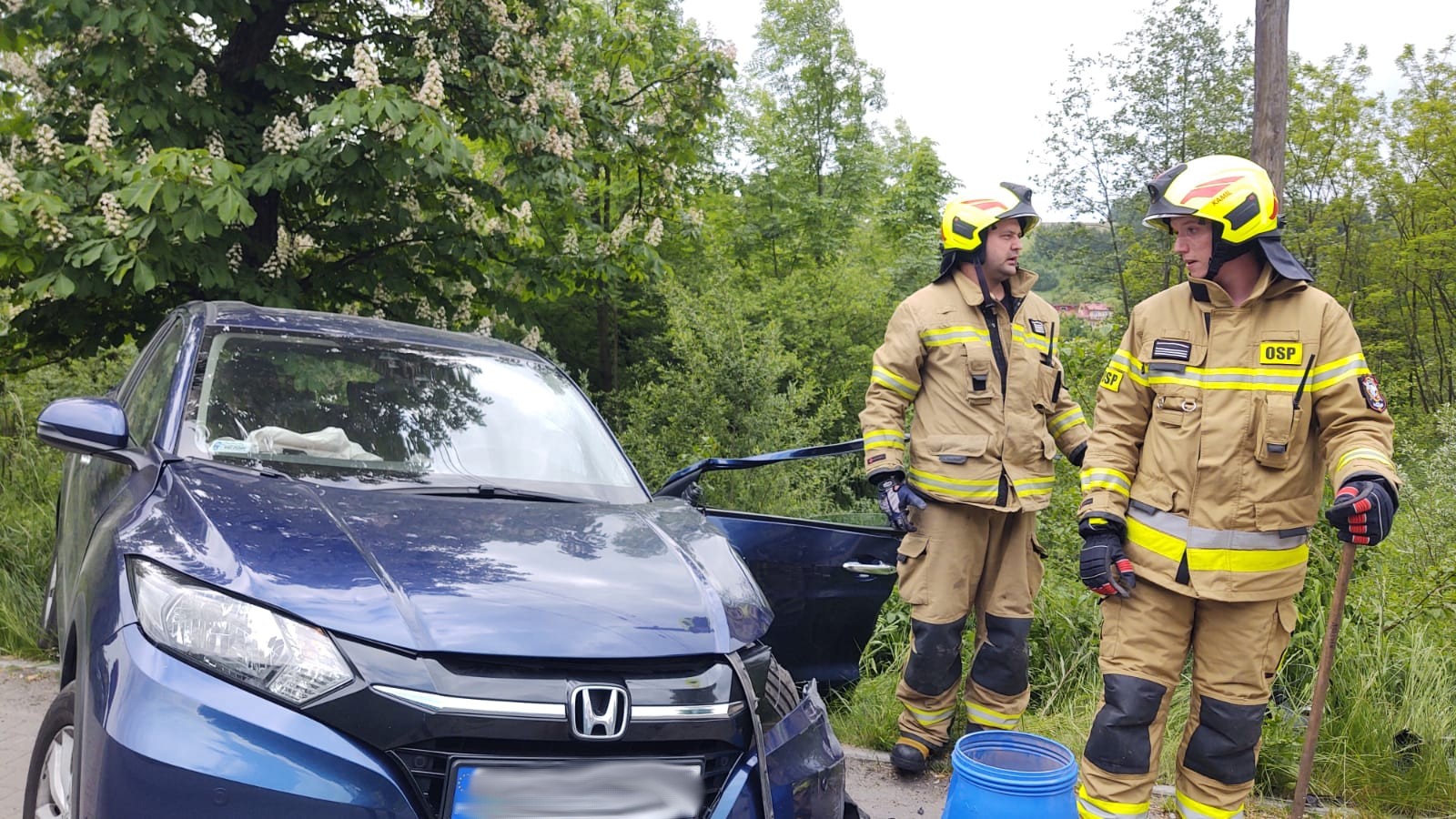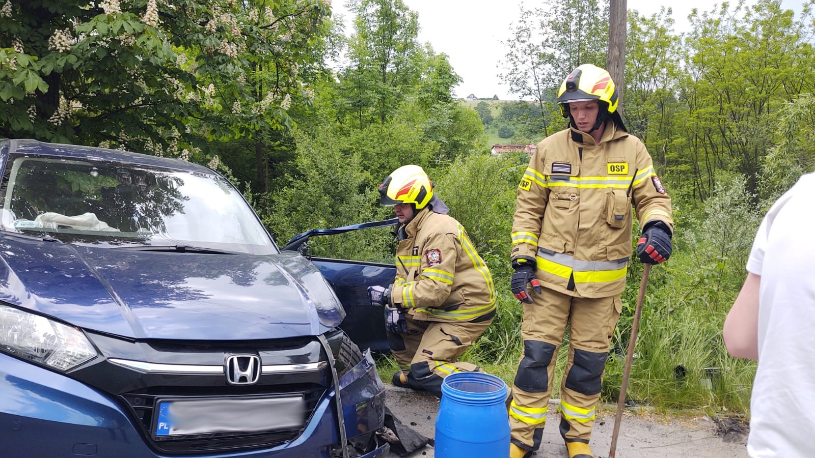 2 czerwca o godzinie 15.29 zastępy z JRG nr 1 w Nowym Sączu oraz OSP Mystków zadysponowane zostały do działań w Jamnicy. Po przybyciu na miejsce zdarzenia stwierdzono, że doszło do zderzenia dwóch samochodów tj. osobowej Hondy i ciężarowego MAN z naczepą na której przewożony był walec drogowy. Pojazdami podróżowało cztery osoby. W chwili przybycia na miejsce pierwszego zastępu straży kierująca Hondą transportowana była przez przybyłych wcześniej na miejsce ratowników medycznych do karetki. Pozostałe osoby nie odniosły widocznych obrażeń i nie uskarżały się na żadne dolegliwości. Z obydwu pojazdów nastąpił wyciek płynów eksploatacyjnych. Strażacy zabezpieczyli miejsce zdarzenia oraz rozłączyli instalacje elektryczne w obydwu pojazdach. Zorganizowano wspólnie z Policją objazdy miejsca zdarzenia. Udzielono pomocy pracownikowi Pomocy Drogowej w umieszczeniu samochodu osobowego na lawecie. Dokonano sorpcji wyciekłych płynów eksploatacyjnych. Osoba poszkodowana została przetransportowana do szpitala. Działania strażaków trwały trzy godziny.