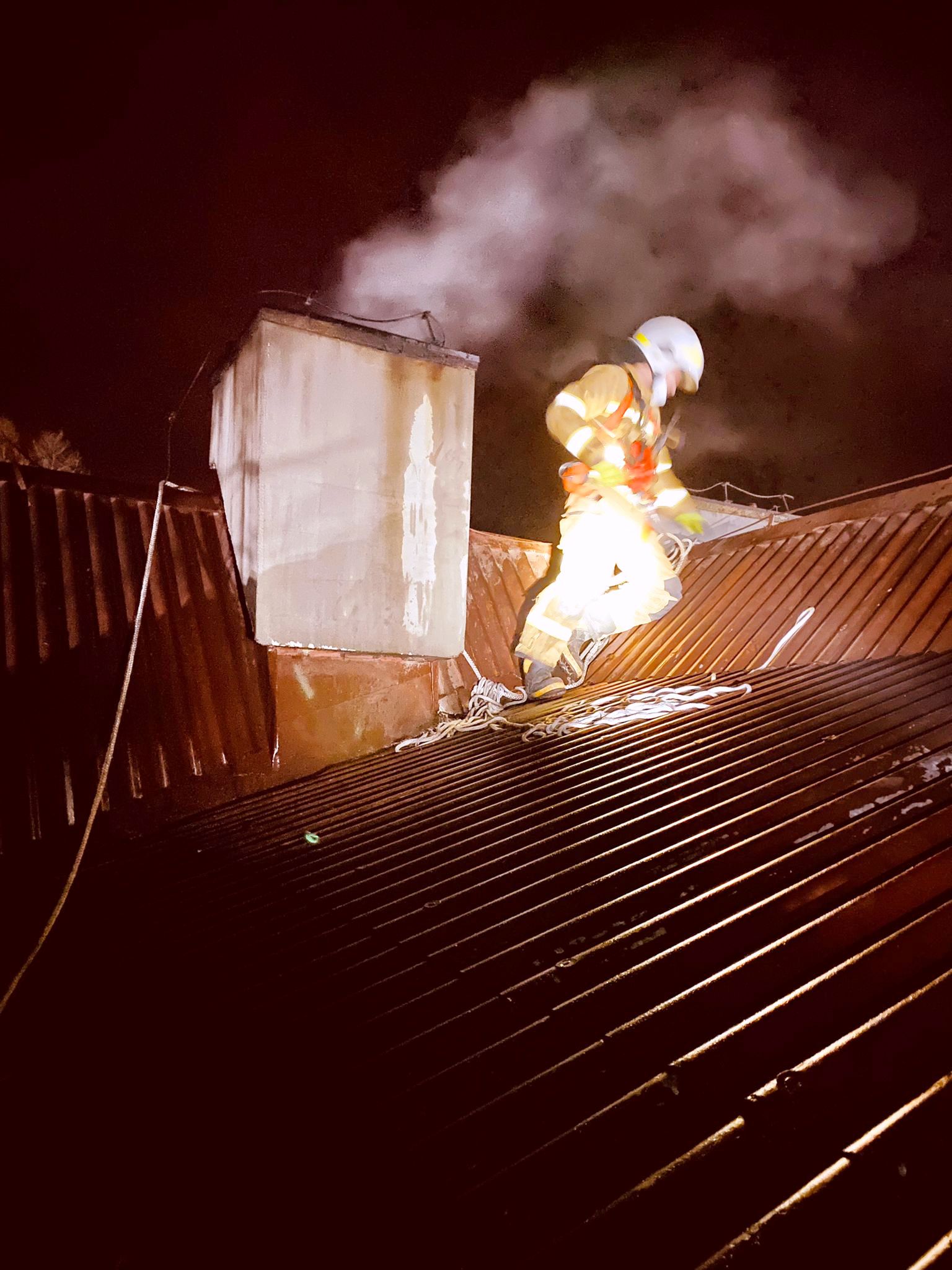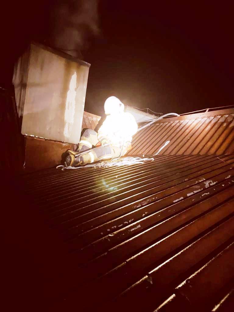 godzinie 18.13 do Kąclowej. Po przybyciu na miejsce zdarzenia ustalono, że zapaliła się sadza w przewodzie kominowym w budynku mieszkalnym wielorodzinnym. Z komina wydobywały się iskry. Działania strażaków polegały na zabezpieczeniu miejsca zdarzenia oraz sprawdzeniu wygaszenia pieca. Następnie wygarnięto sadzę z wyciora komina. Ubrano strażaków w sprzęt wysokościowy oraz usunięto palącą się sadze z komina przy użyciu kuli i szczotki kominiarskiej. Dalsze działania polegały na kontroli ciągu kominowego przy użyciu kamery termowizyjnej. Komin przebiegał przez dwa mieszkania oraz strych. Skontrolowano wszystkie pomieszczenia mieszkalne na obecność gazów niebezpiecznych przy użyciu czujnika wielogazowego. Podano jeden prąd piany ciężkiej do otworu komina. Otwarto okna w kotłowni oraz budynku w celu przewietrzenia. Po wyczyszczeniu komina, wybrano rozżarzoną sadzę z wyciora, wysypano ją w bezpiecznym miejscu na zewnątrz budynku i przelano ją wodą. Działania strażaków trwały dwie godziny.