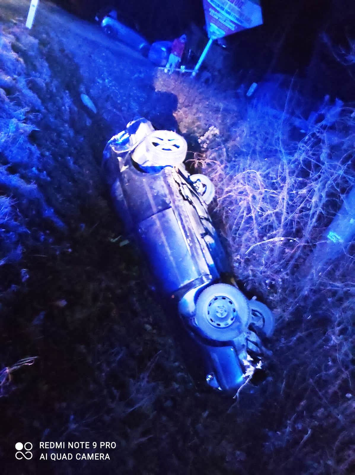 Kadcza- samochód osobowy wypadł z drogi