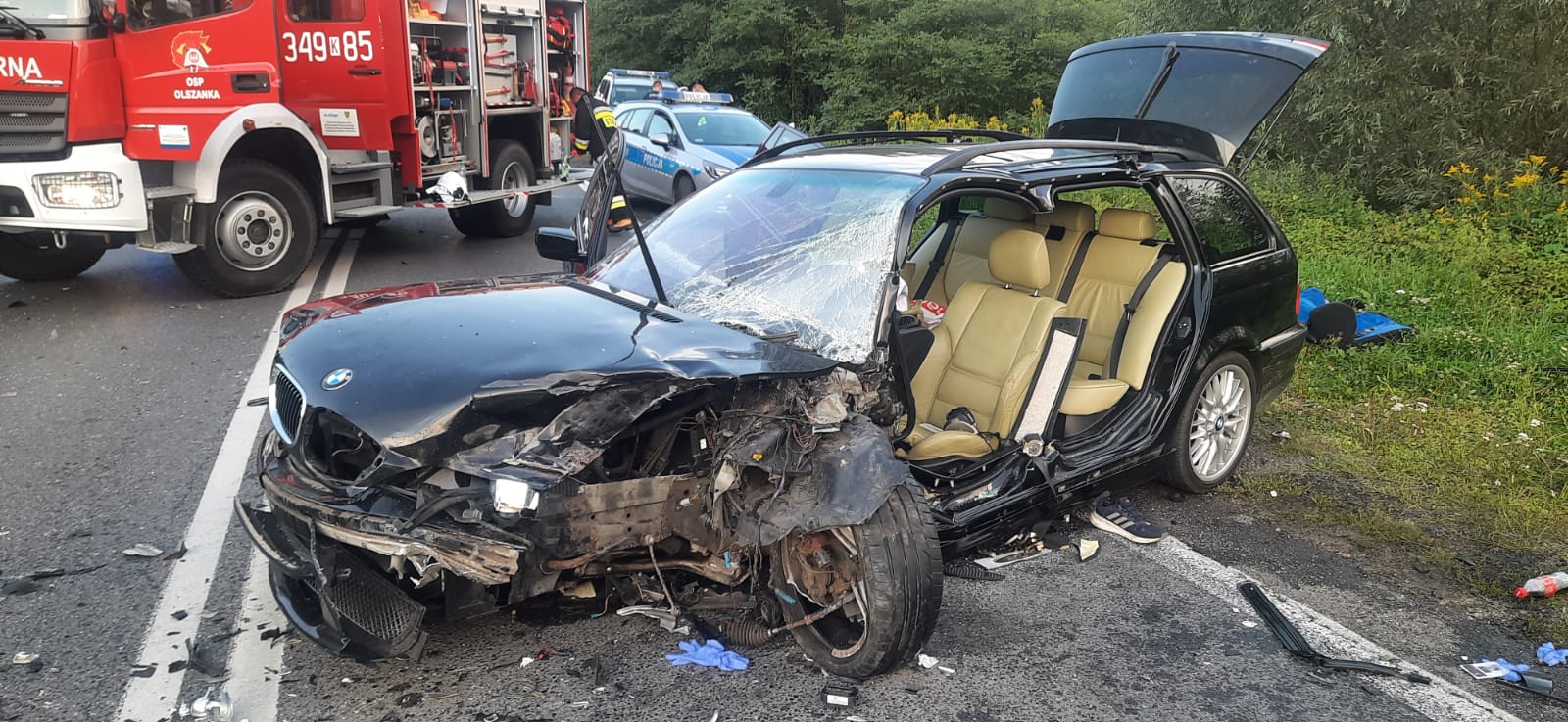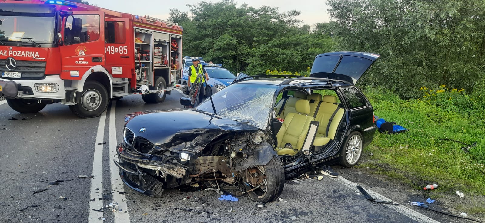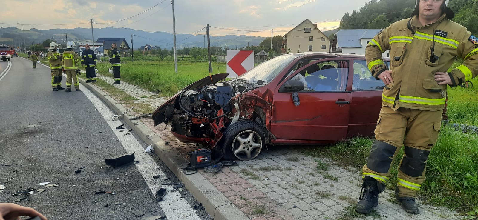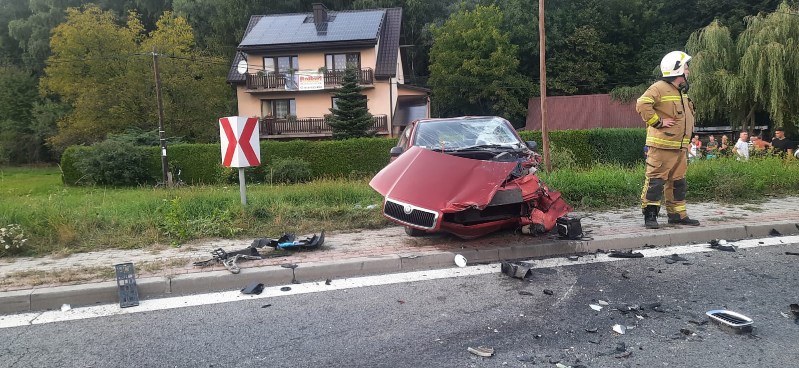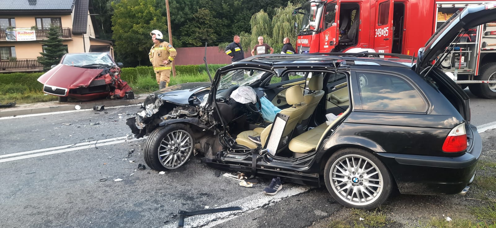 15 sierpnia o godzinie 18.10 zastępy z JRG nr 2 w Nowym Sączu, OSP Kadcza oraz OSP Olszanka zadysponowane zostały do działań w Kadczy. Po przybyciu na miejsce zdarzenia ustalono, że doszło do zderzenia dwóch samochodów osobowych marki BMW oraz SKODA. Pojazdami podróżowało łącznie siedem osób w tym dwójka dzieci. W chwili przybycia zastępów Straży Pożarnej sześć osób podróżujących pojazdami z dolegliwościami znajdowało się poza pojazdami. Kierowca BMW znajdował się zakleszczony w pojeździe. Działania strażaków polegały na zabezpieczeniu miejsca zdarzenia oraz przeprowadzeniu segregacji podczas której kolor czerwony przydzielono trzem osobom, żółty trzem osobom a jednej kolor zielony. Strażacy udzielili pomocy ratownikom medycznym Pogotowia ratunkowego w udzielaniu medycznych czynności ratunkowych u osób poszkodowanych. Wykonano dostęp do osoby zakleszczonej przy pomocy narzędzi hydraulicznych a następnie ewakuowano ją na zewnątrz pojazdu. Sukcesywnie z miejsca zdarzenia odjeżdżały kolejno karetki transportując osoby poszkodowane do szpitala. Odłączono klemy akumulatorów w pojazdach. Oznakowano oraz zablokowano jezdnię w obu kierunkach. Dokonano sorpcji rozlanych płynów eksploatacyjnych. Udzielono pomocy Policji w kierowaniu pojazdów na objazd. Udzielono pomocy w usunięciu pojazdów. Usunięto z drogi pozostałości powypadkowe. Działania strażaków trwały ponad półtorej godziny. Na miejscu zdarzenia pozostał patrol Policji prowadząc dalsze czynności wyjaśniające okoliczności zdarzenia.