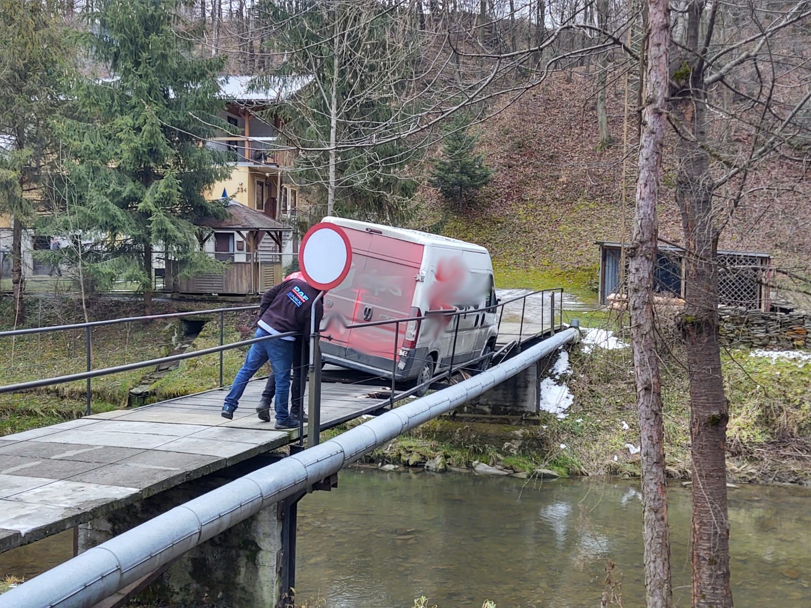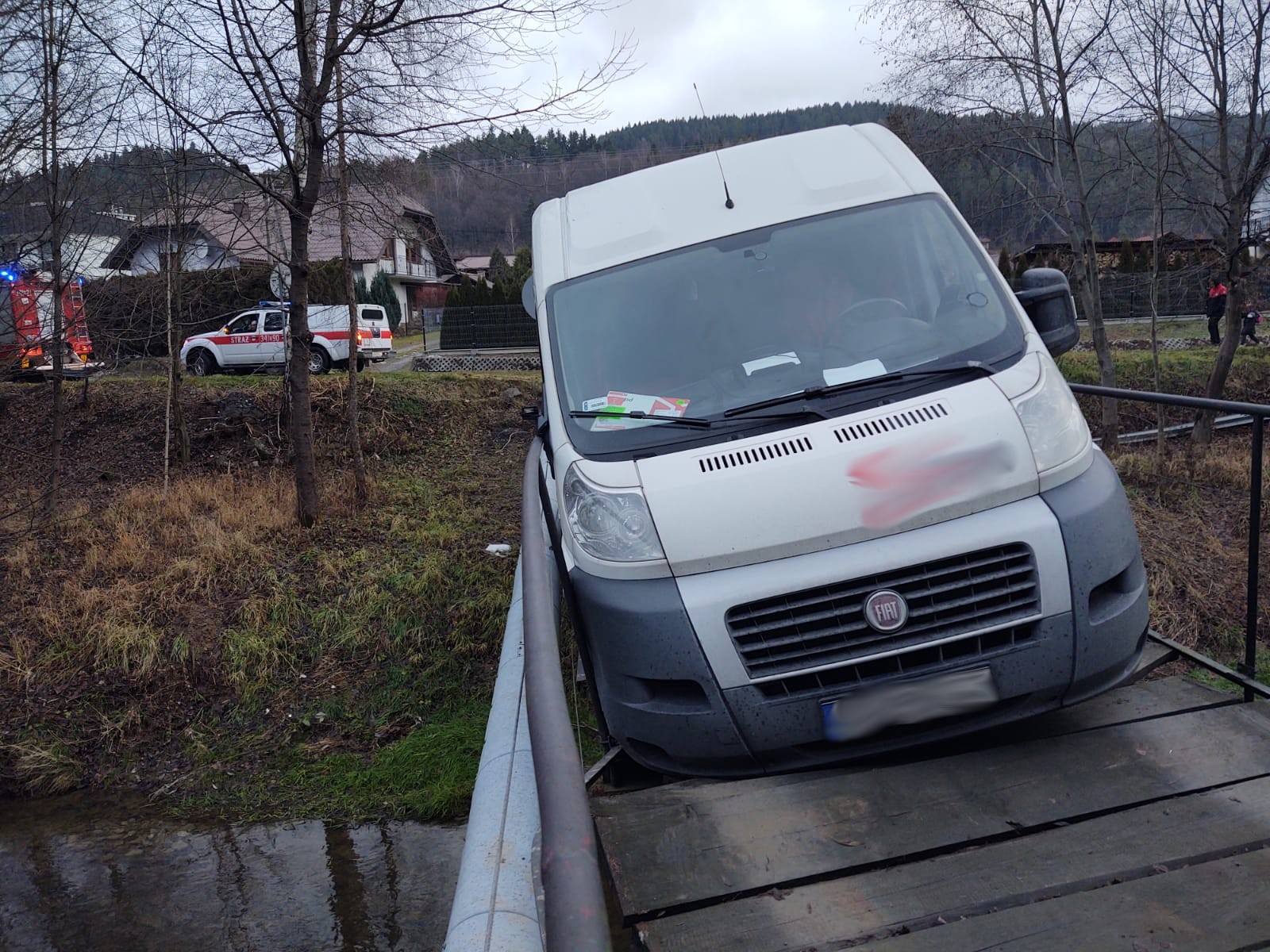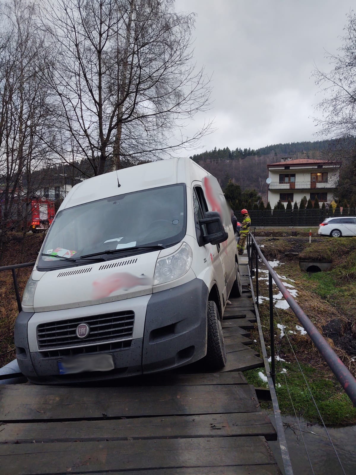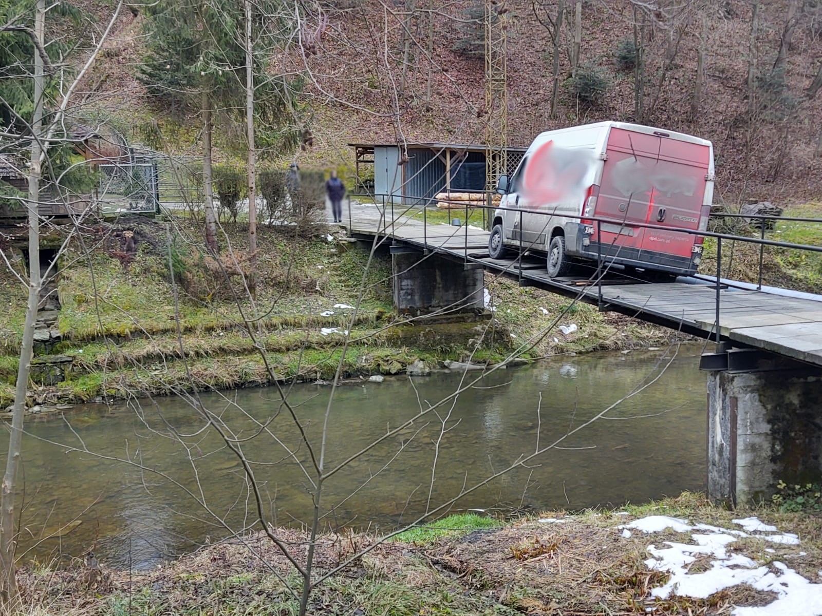 Kamionka Wielka- pod samochodem dostawczym załamały się drewniane belki na moście