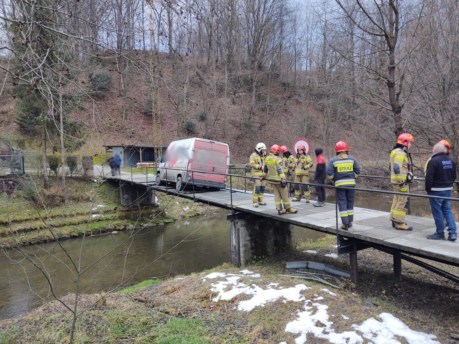 17 grudnia około godziny 13.36 zastępy z JRG nr 1 w Nowym Sączu oraz OSP Królowa Górna zadysponowane zostały do działań w Kamionce Wielkiej. Po przybyciu na miejsce zdarzenia stwierdzono, że pod samochodem dostawczym firmy kurierskiej załamały się drewniane belki na moście co spowodowało, że pojazd przechylił się i zawisł na stalowej konstrukcji mostu. Most prowadzi do jednego domu nad rzeką Kamionka. Samochodem dostawczym podróżował sam kierujący, który opuścił pojazd przed przybyciem zastępów straży pożarnej. Kierujący nie uskarżał się na żadne dolegliwości. Na miejscu obecny był patrol Policji. Działania strażaków polegały na zabezpieczeniu miejsca zdarzenia oraz sprawdzeniu możliwości wyciągnięcia pojazdu poprzez siły i środki straży pożarnej. Właścicielka mostu nie wyraziła zgody na usunięcie pojazdu w inny sposób niż podniesienie go i przeniesienie przy użyciu dźwigu lub innego podobnego sprzętu. Z uwagi na powyższe odstąpiono od dalszych działań straży pożarnej. Działania strażaków trwały godzinę.