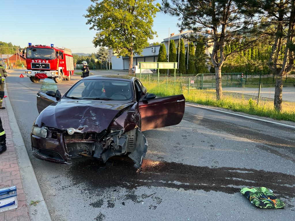 20 czerwca o godzinie 5.23 zastępy z JRG nr 1 w Nowym Sączu oraz OSP Klęczany zadysponowane zostały do działań w Klęczanach. Po przybyciu na miejsce zdarzenia stwierdzono, że doszło do zdarzenia dwóch samochodów osobowych. Samochodami podróżowały w sumie trzy osoby, które opuściły pojazdy o własnych silach. Jedna osoba uczestnicząca w zdarzeniu znajdowała się w własnym domu oddalonym około 200 metrów od miejsca zdarzenia. Jeden samochód znajdował się poza jezdnią na pobliskiej łące a drugi na prawym pasie jezdni. Droga była zablokowana w obydwu kierunkach. Z samochodu stojącego na drodze wyciekł płyn chłodniczy. Na miejscu zdarzenia znajdował się patrol policji. Działania zastępów straży pożarnej polegały na zabezpieczeniu miejsca zdarzenia, rozłączeniu akumulatorów w uszkodzonych pojazdach oraz dotarciu do osoby, która znajdowała się we własnym domu. Po dotarciu do osoby poszkodowanej wraz z przybyłymi na miejsce zdarzenia ratownikami pogotowia ratunkowego stwierdzono, że jest ona poszkodowana. Po przebadaniu osoby poszkodowanej została ona przetransportowana do szpitala. Po wykonaniu czynności dochodzeniowych przez Policję zepchnięto samochód z jezdni na pobocze. Usunięto z jezdni pozostałości po zdarzeniu. Posypano sorbentem rozlane płyn eksploatacyjne. Działania strażaków trwały trzy godziny.
