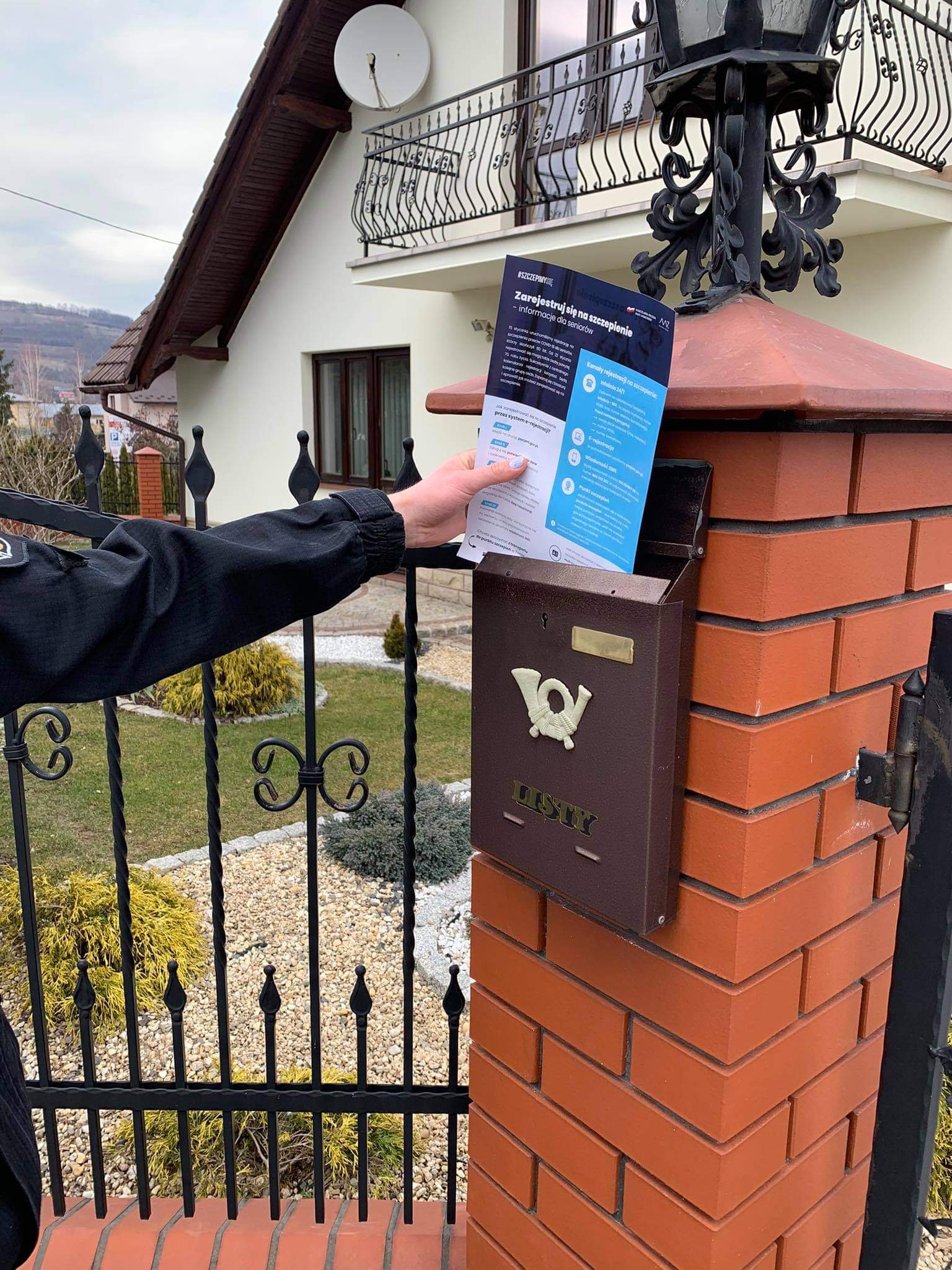 Materiały mają przede wszystkim trafić do mieszkańców wykluczonych cyfrowo, którzy nie korzystają z zasobów internetu, często są samotni lub nie radzą sobie z informacją z innych źródeł. Na ulotkach znalazły się m.in. informacje o tym, jak zapisać się na szczepienie. Kolportowanie ulotek zakończy się w dniu 31 marca br. W kilku gminach ulotki już zostały rozkolportowane.