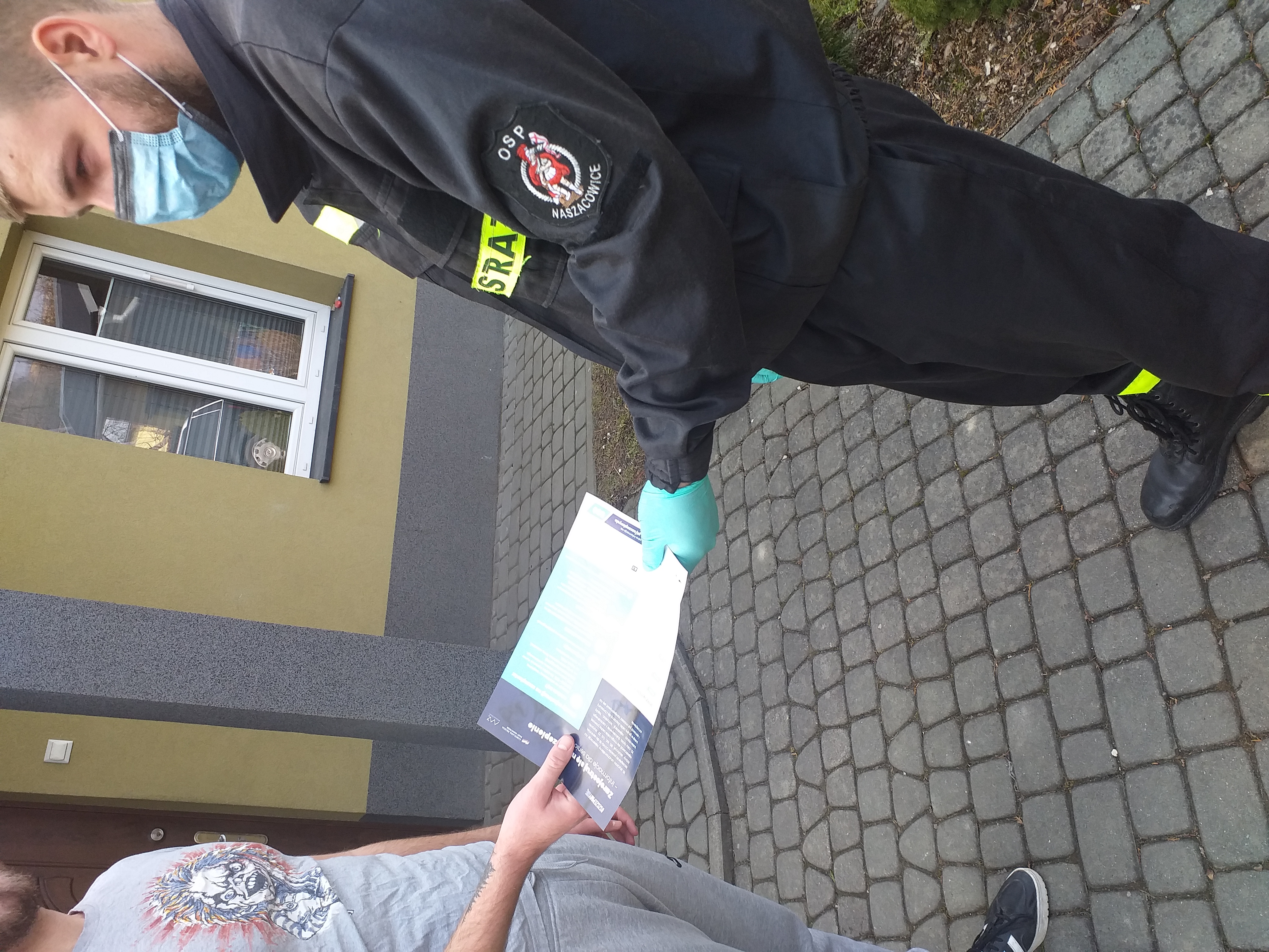 Na terenie powiatu nowosądeckiego można spotkać strażaków OSP, którzy roznoszą ulotki informacyjne na temat profilaktyki oraz szczepień przeciwko COVID-19