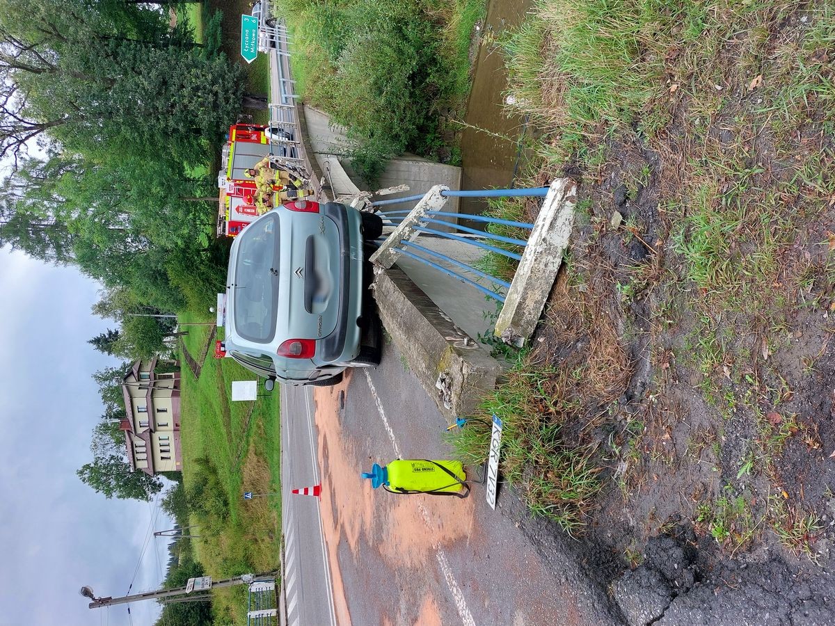 Korzenna - samochód osobowy uderzył w barierę mostu