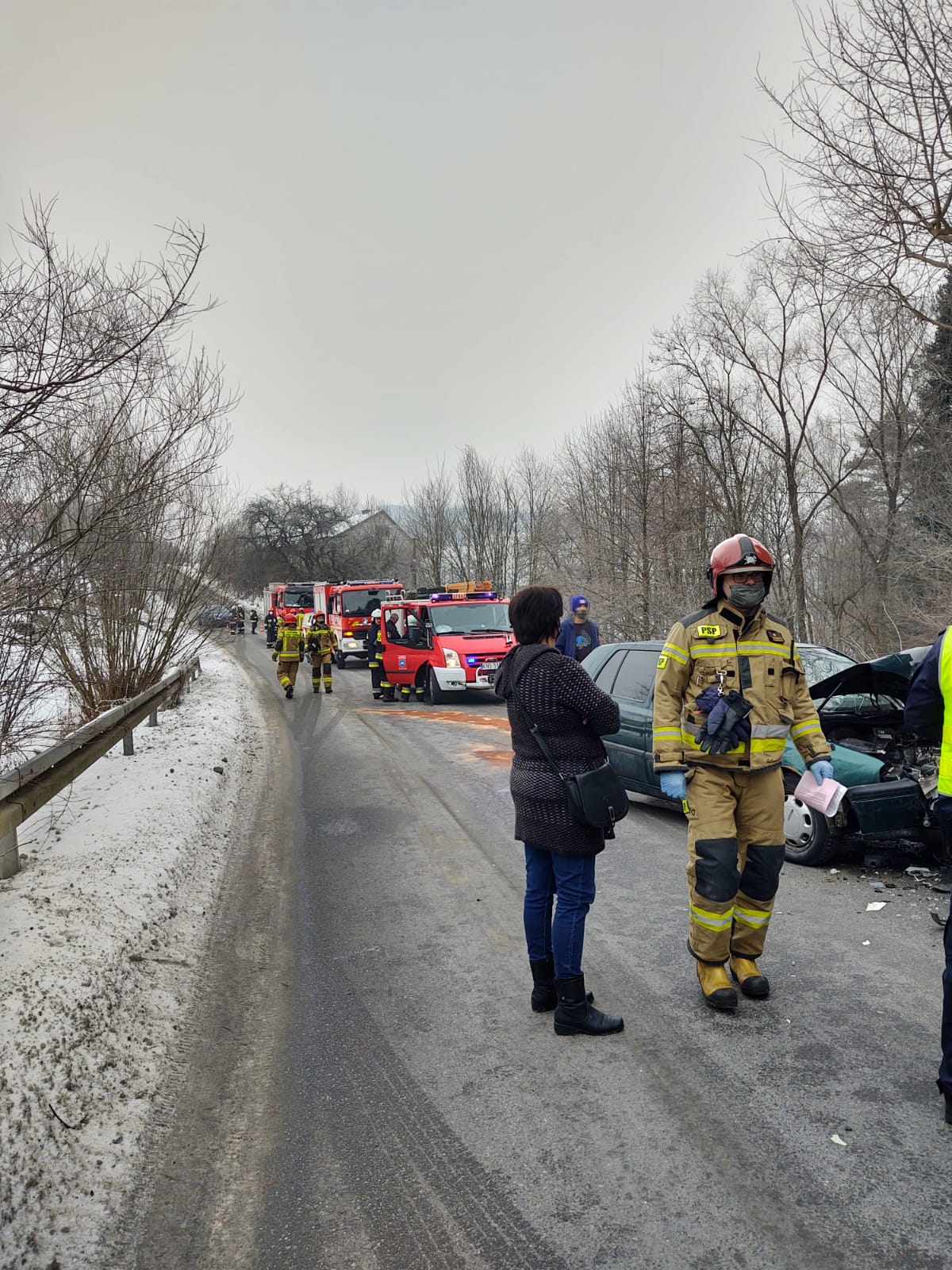 1 lutego około godziny 10.44 zastępy z JRG nr 1 w Nowym Sączu, OSP Krużlowa Niżna oraz OSP Krużlowa Wyżna zadysponowane ostały do działań w Krużlowej Niżnej. Po przybyciu na miejsce zdarzenia ustalono, że doszło do zderzenia czołowego dwóch samochodów osobowych. Samochodami podróżowało dwoje kierowców, którzy opuścili pojazdy przed przybyciem zastępów straży i oczekiwali na służby ratownicze na poboczu. Jedna z osób biorąca udział w zdarzeniu doznała obrażeń. Obydwa pojazdy znajdowały się na jednym pasie ruchu. Nastąpił wyciek płynów eksploatacyjnych z uszkodzonych pojazdów. Działania strażaków polegały na zabezpieczeniu miejsca zdarzenia oraz udzieleniu kwalifikowanej pierwszej pomocy osobie poszkodowanej. Dalsze działania polegały na odłączeniu zasilania elektrycznego w uszkodzonych pojazdach, sorpcji rozlanych płynów eksploatacyjnych oraz usunięciu samochodów na pobliskie pobocze. Osoba poszkodowana została zabrana do szpitala. Działania strażaków trwały ponad godzinę.