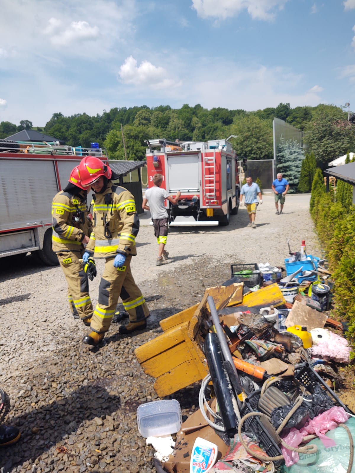 22 czerwca o godzinie 12.05 zastępy z JRG nr 1 w Nowym Sączu, OSP Krużlowa Wyżna oraz OSP Stara Wieś zadysponowane zostały do działań w Krużlowej Wyżnej. Po przybyciu na miejsce zdarzenia ustalono, że w budynku wielobranżowym na parterze w pomieszczeniu kotłowni, doszło do zapalenia się materiału palnego nagromadzonego wokół pieca. Dym wydobywał się przez drzwi kotłowni. Wszystkie osoby przebywające w budynku opuściły pomieszczenia przed przybyciem straży pożarnej i znajdowały się na zewnątrz. Żadna z osób na miejscu zdarzenia nie uskarżała się na dolegliwości. Działania strażaków polegały na zabezpieczeniu miejsca zdarzenia, zamknięciu zaworu dopływu gazu ziemnego, wejściu do kotłowni strażaków oraz zlokalizowaniu ogniska pożaru. Wyniesiono na zewnątrz nagromadzony materiał palny z kotłowni na zewnątrz. Dalsze czynności polegały na przelaniu wynoszonego materiału palnego z kotłowni na zewnątrz. Sprawdzono pomieszczenia znajdujące się na parterze oraz wyższej kondygnacji pod kątem wystąpienia gazów niebezpiecznych. Przewietrzono pomieszczenia poprzez otwarcie okien. Uruchomiono wentylator oddymiający w celu przewietrzenia pomieszczenia sklepu. Schłodzono pomieszczenia kotłowni poprzez podanie prądu wody. Po ponownej kontroli pomieszczeń kamerą termowizyjną nie stwierdzono nieprawidłowości. Działania strażaków trwały półtorej godziny.
