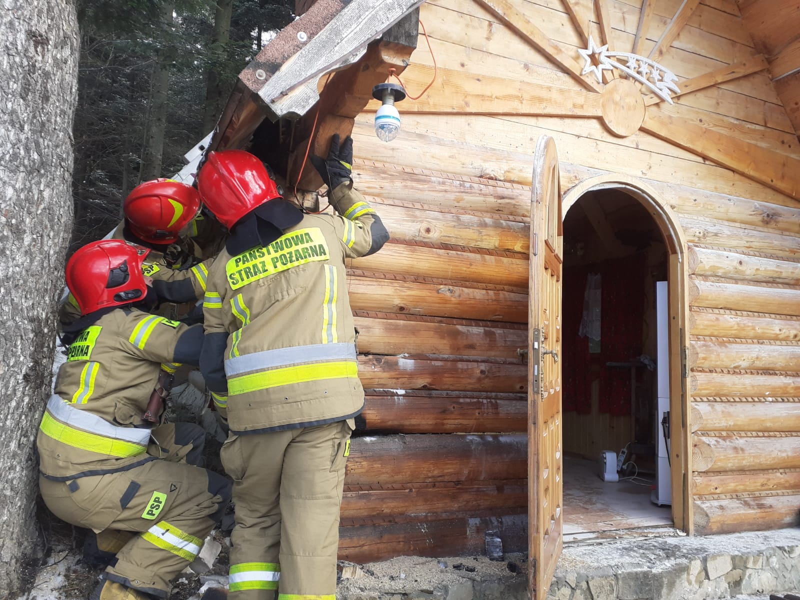 21 grudnia o godzinie 9.18 zastępy z JRG nr 1 w Nowym Sączu, OSP Krużlowa Wyżna, OSP Krużlowa Niżna oraz OSP Stara Wieś zadysponowane zostały do działań w Krużlowej Wyżnej. Po przybyciu na miejsce zdarzenia ustalono, że z nieustalonych powodów doszło do zapalenia się części zewnętrznej, drewnianej konstrukcji domku letniskowego. Budynek był oddalony około 30 m od innych budynków i znajdował się w terenie zalesionym. Na miejscu obecne były osoby odpowiedzialne za obiekt, które podjęły próbę ugaszenia powstałego pożaru. Z informacji uzyskanych od współwłaściciela budynku została wyłączona instalacja elektryczna. Działania zastępów straży polegały na zabezpieczeniu miejsca zdarzenia oraz wycięciu przy pomocy piły mechanicznej nadpalonych elementów. Dalsze działania zastępów polegały na dalszej rozbiórce i przelewaniu nadpalonych drewnianych elementów. Podano jeden prąd wody na nadpalone elementy drewnianej konstrukcji budynku. Dokonano częściowej rozbiórki konstrukcji kominka. Sprawdzono przy pomocy kamery termowizyjnej miejsca, w których możliwe było wystąpienie zarzewi ognia. Sprawdzono atmosferę wewnątrz obiektu na obecność gazów niebezpiecznych przy użyciu urządzenia wielogazowego. Podjęto decyzje o zakończeniu działań i powrocie zastępów do koszar. W drodze powrotnej jeden zastęp OSP miał trudności z pokonaniem oblodzonego podjazdu, z tego powodu podjęto decyzje o zadysponowaniu na miejsce pożaru służbę odpowiedzialną za zimowe utrzymanie dróg w celu posypania drogi. Po posypaniu drogi i bezpiecznym pokonaniu newralgicznego miejsca przez zastęp OSP, wszystkie zastępy wróciły do koszar. Działania strażaków trwały trzy godziny.
