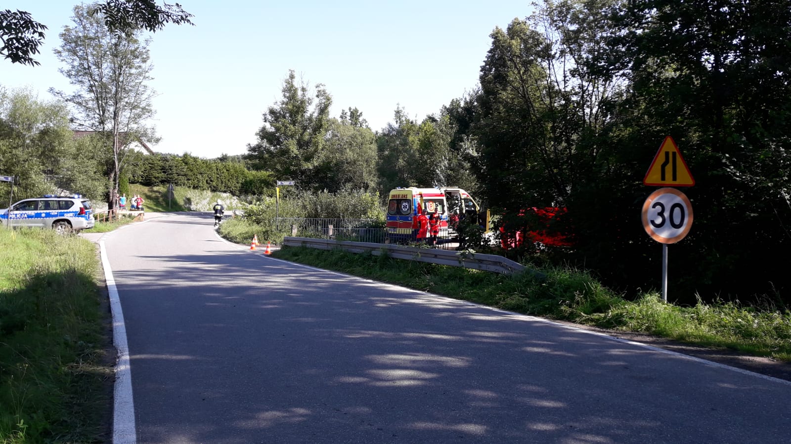 Krużlowa Wyżna- samochód osobowy wypadł z drogi i wpadł do koryta potoku
