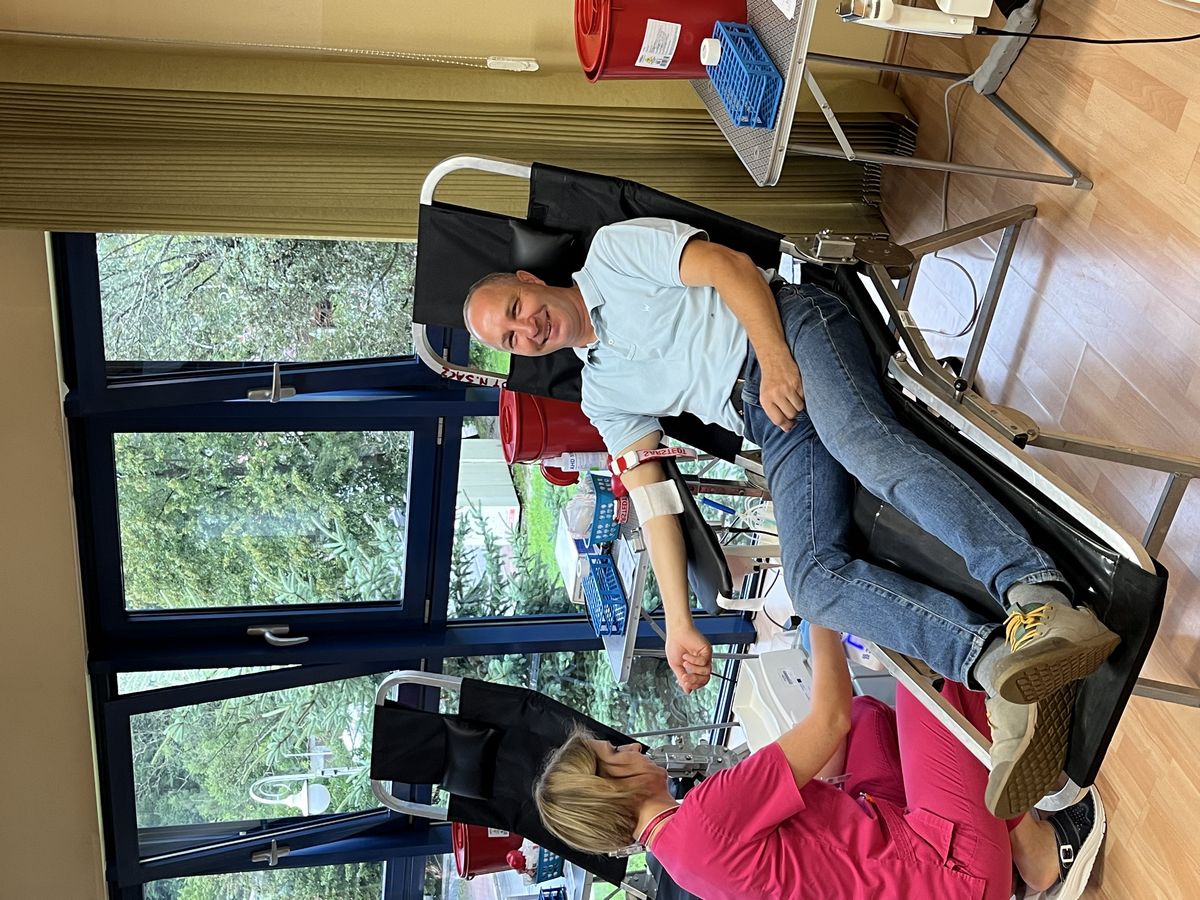 Na koniec wykonano pamiątkowe zdjęcie z sympatycznym personelem medycznym po bardzo udanej akcji poboru krwi mimo deszczowej pogody krwiodawcy nie zawiedli.