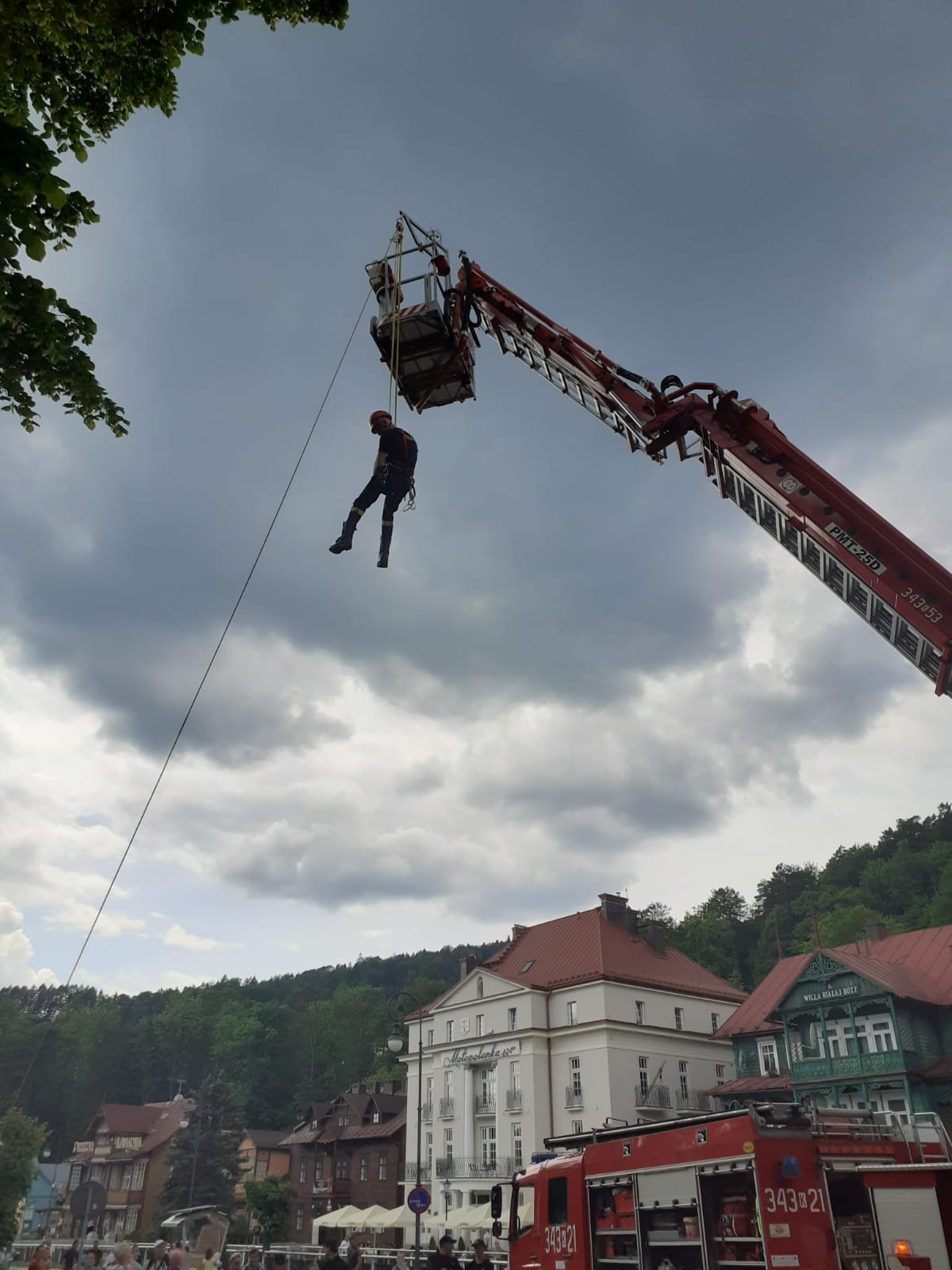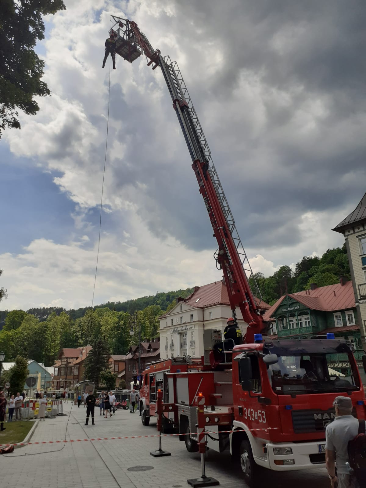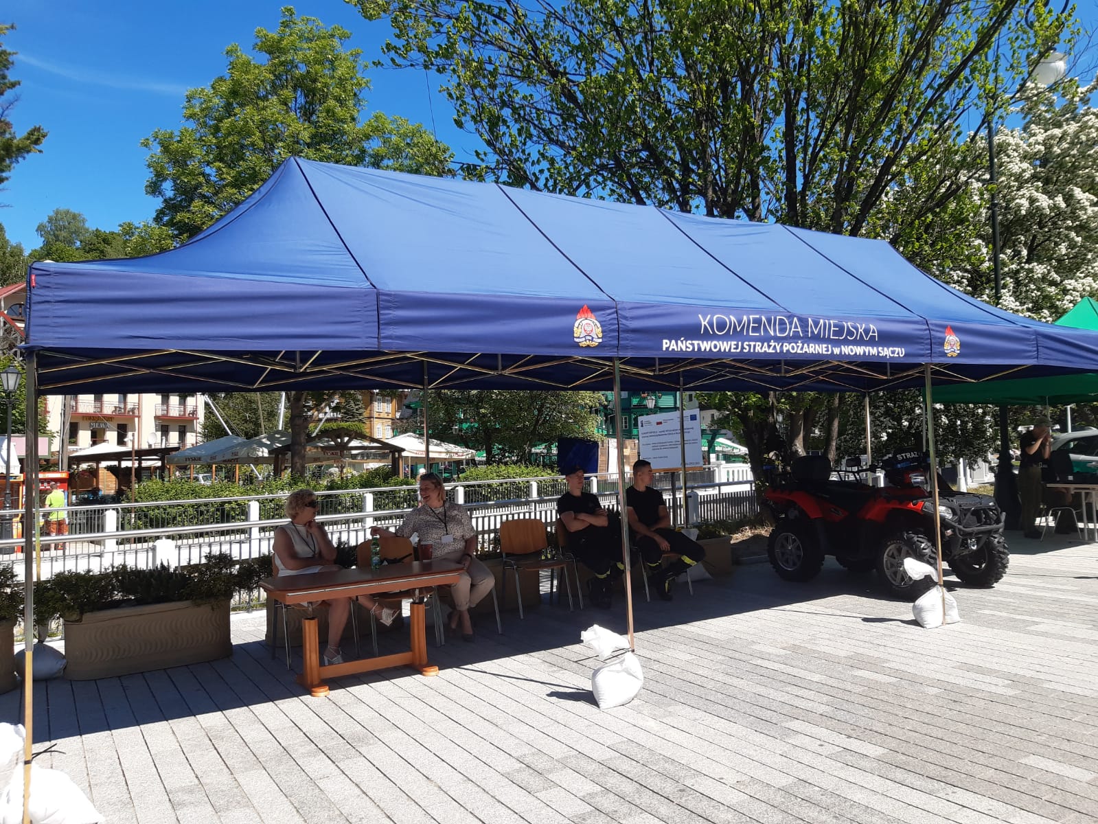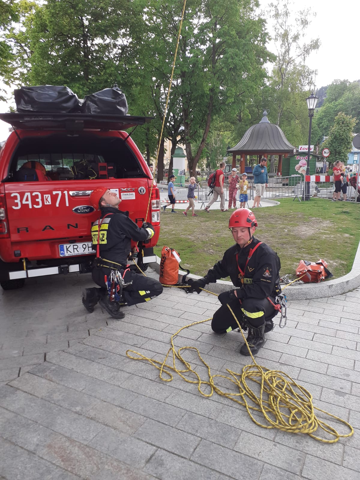 Sądeccy strażacy w sobotę i niedzielę (12 i 13 czerwca) zabezpieczają mobilny punkt szczepień na deptaku w Krynicy Zdroju. Podczas prowadzonego zabezpieczenia istnieje możliwość zapoznania się ze sprzętem strażaków. Strażacy wykonują również pokaz z zakresu ratownictwa wysokościowego oraz poszukiwawczo-ratowniczego.