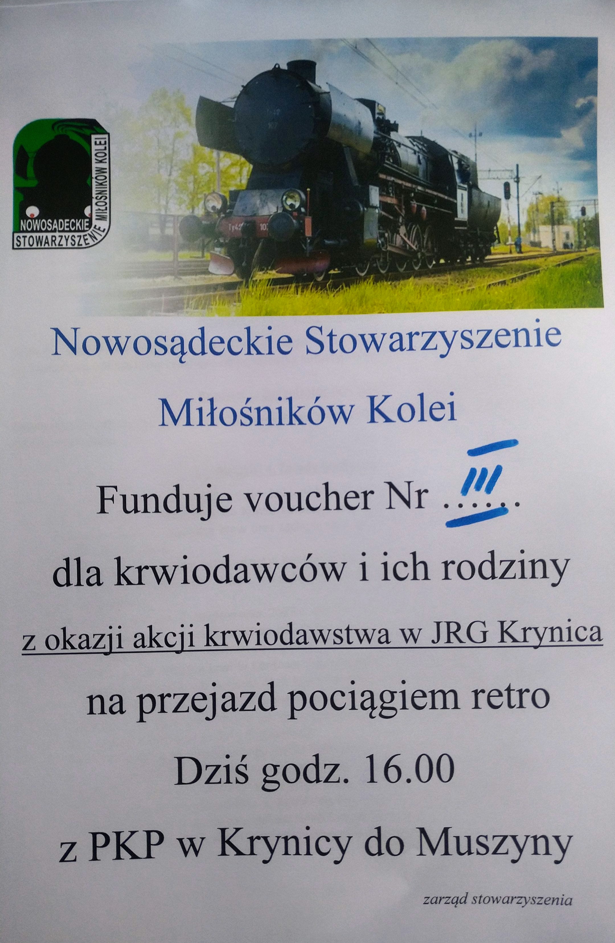 Każdy z krwiodawców został tradycyjnie obdarowany czekoladami. Ponadto, jako klub HDK PCK „Ognista Kropla” przygotowaliśmy poczęstunek dla wszystkich dawców w postaci tradycyjnego czerwonego barszczu z pasztecikiem. Każdy oddający otrzymał w tym dniu drobny upominek ramka tablicy rejestracyjnej z napisem „zostań bohaterem, podziel się życiem”. Miłym akcentem było ufundowanie dla oddających trzech vocherów przez Nowosądeckie Stowarzyszenie Miłośników Kolei na przejazd pociągiem retro z Krynicy do Muszyny, który zawitał do Krynicy w tym dniu.