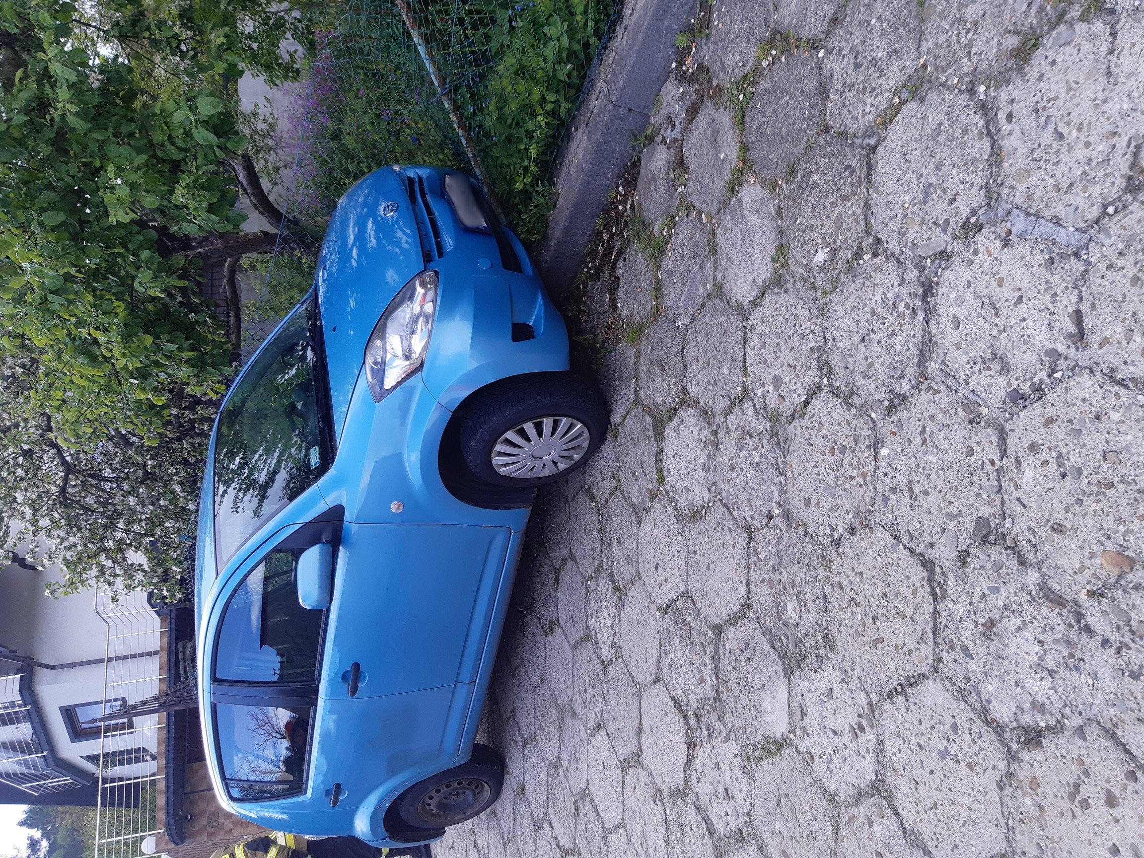 Krynica-Zdrój, ul. Kościuszki- samochód osobowy stoczył się i uderzył w ogrodzenie