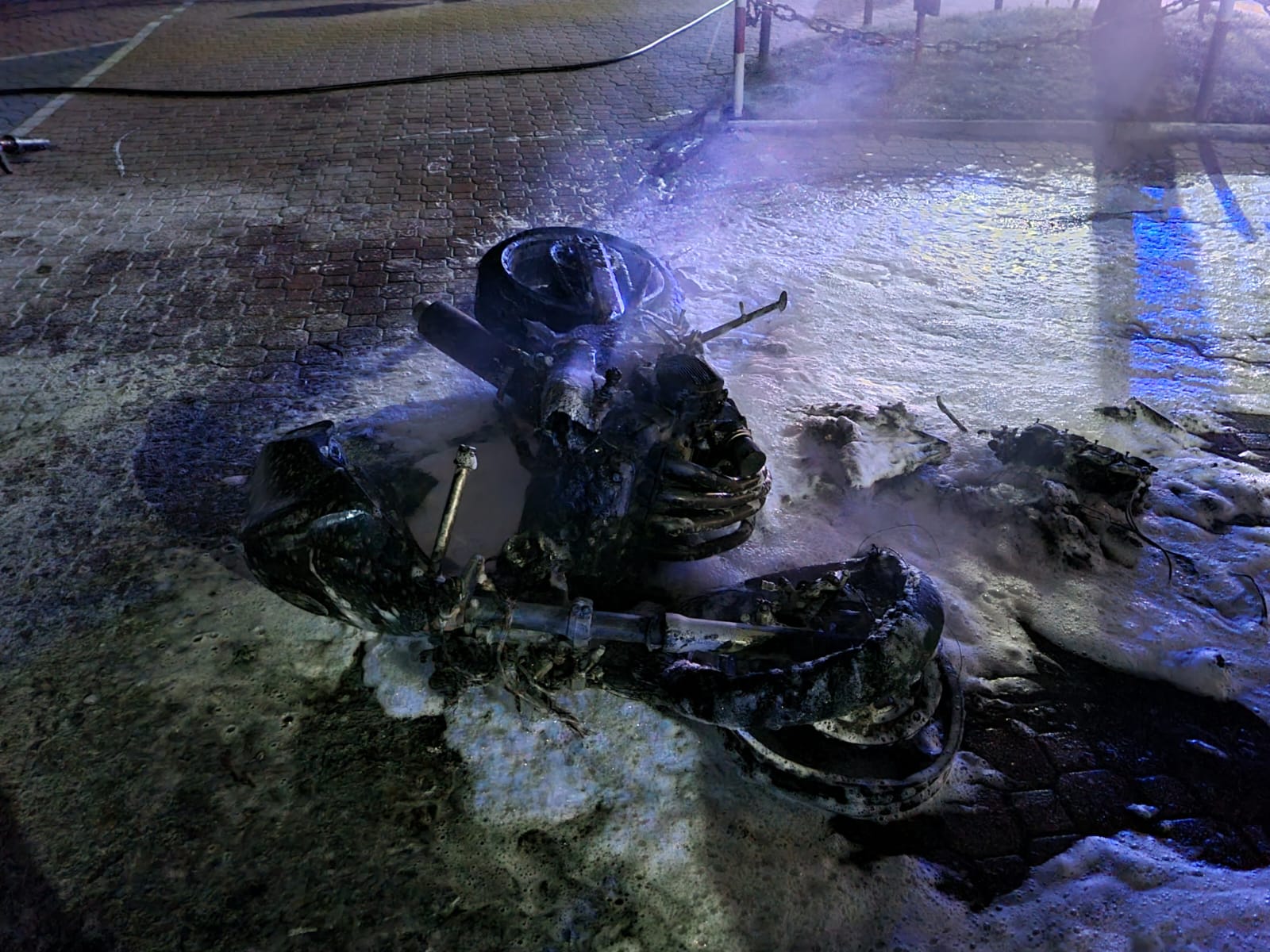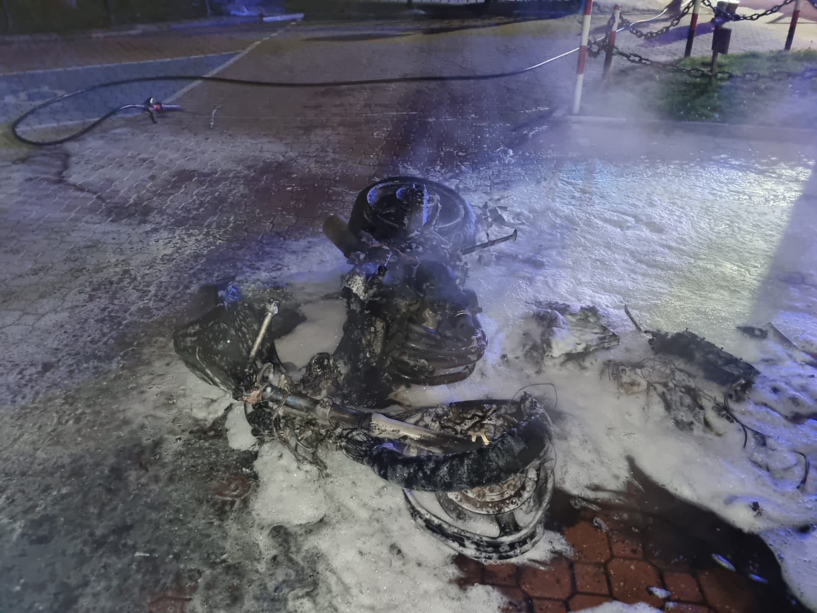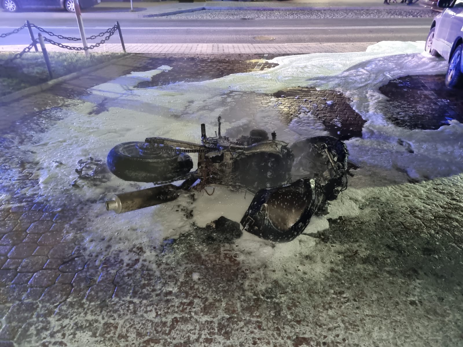 19 maja o godzinie 23.43 zastęp z JRG w Krynicy Zdroju zadysponowany został do działań w Krynicy Zdroju na ulicę Kraszewskiego. Po przybyciu na miejsce zdarzenia ustalono, że na parkingu przy drodze palił się motocykl. W chwili przybycia na miejsce zastępu straży, pożar był już rozwinięty, a w bliskim sąsiedztwie płonącego jednośladu znajdowały się zaparkowane samochody. Strażacy zabezpieczyli miejsce zdarzenia a następnie płomienie zostały stłumione przy wykorzystaniu gaśnicy proszkowej. Następnie podano prąd piany ciężkiej. Po dogaszeniu pożaru pojazd chłodzono prądem wody. Dogaszony pojazd sprawdzono za pomocą kamery termowizyjnej nie stwierdzając ukrytych zarzewi ognia. Pojazd pisemnie przekazano właścicielowi. Działania strażaków trwały ponad pół godziny.