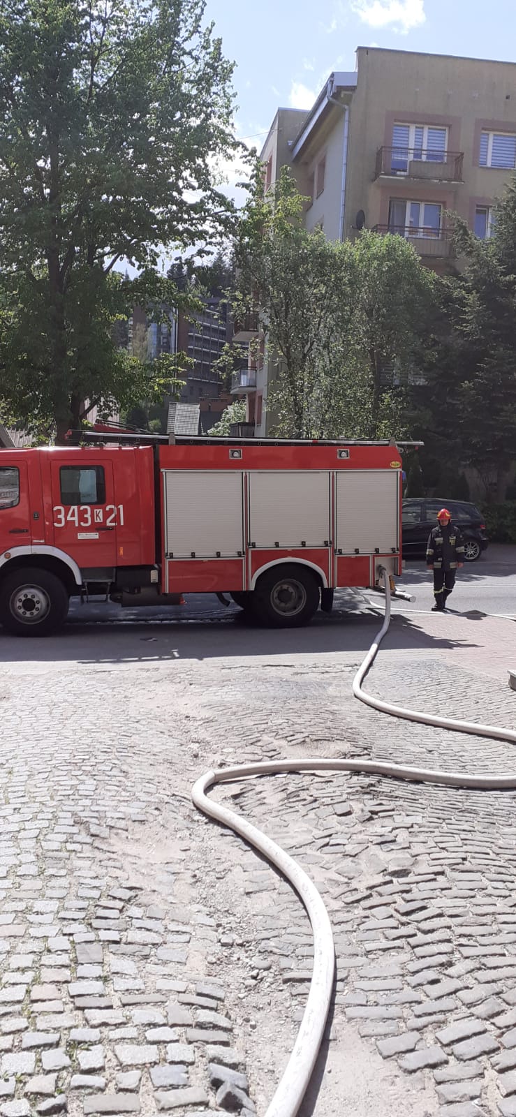 Krynica-Zdrój, ul. Piłsudskiego - pożar pomieszczenia technicznego restauracji