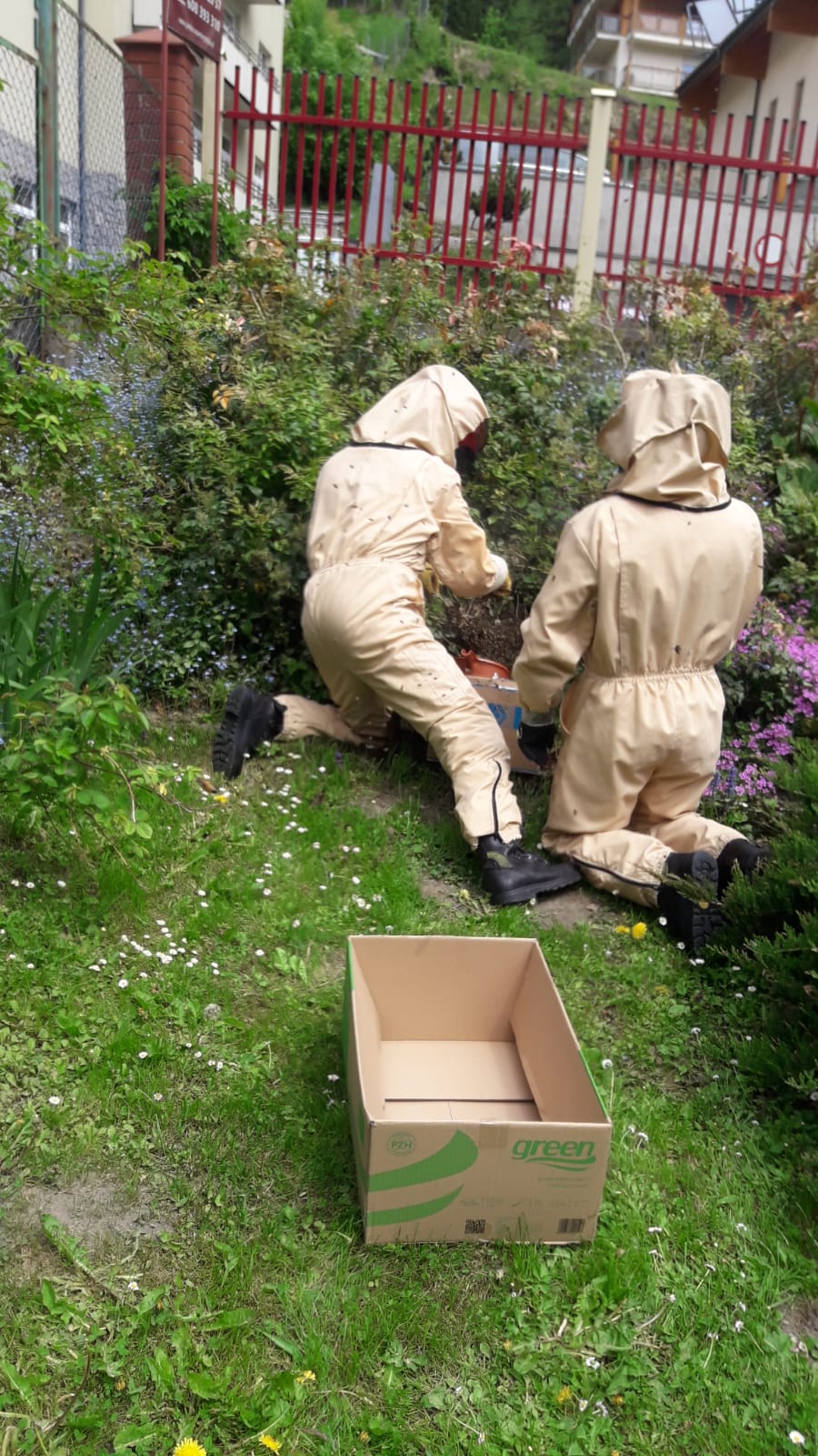 24 maja o godzinie 11.23 zastęp z JRG w Krynicy Zdroju zadysponowany został do działań w Krynicy Zdroju na ulicę Pułaskiego. Po przybyciu na miejsce zdarzenia ustalono, że na krzewach ozdobnych prywatnej posesji w pobliżu często uczęszczanego chodnika znajdował się rój pszczeli. Część owadów migrowała w promieniu kilku metrów gdzie znajdował się chodnik po którym pieszo poruszali się turyści. Działania strażaków polegały na zabezpieczeniu miejsca zdarzenia poprzez oznakowanie taśmą ostrzegawczą ciągu pieszego oraz informowanie przechodniów o konieczności poruszania się chodnikiem po drugiej stronie jezdni. Na miejsce przybył pszczelarz wraz z rojnicą transportową na pszczoły. Osoba ta wraz ze strażakami zabezpieczonymi w ubrania ochronne przemieszczała owady zgodnie z instrukcja pszczelarza do specjalnej skrzyni transportowej. Działania te trwały ponad jedną godzinę. Wspólnie zebrano zdecydowaną większość owadów, pozostały pojedyncze pszczoły których ze względu na brak osiadania nie udało się złapać. Wydzielony taśmą ostrzegawczą teren pozostawiono do wieczora.