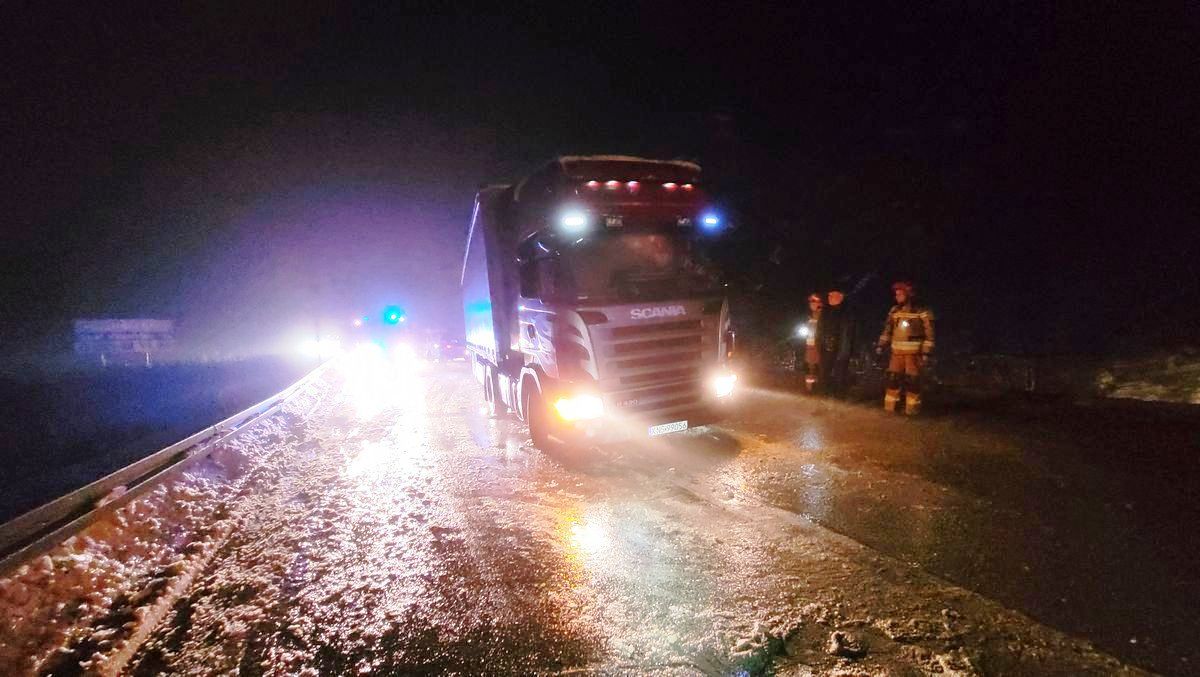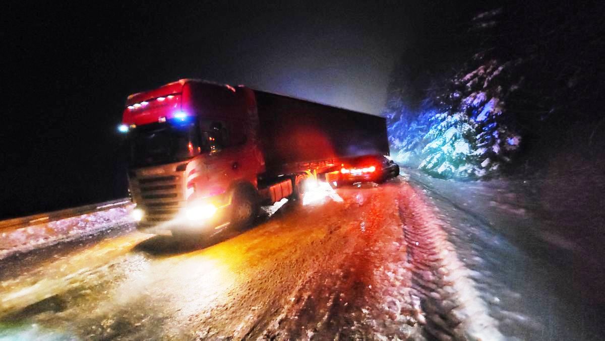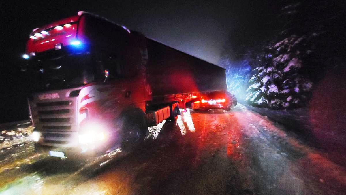 31 grudnia o godzinie 5.51 zastępy z JRG w Krynicy Zdroju zadysponowane zostały do działań na ulicę Sądecką w Krynicy Zdroju. Po przybyciu na miejsce zdarzenia ustalono, że miała miejsce kolizja samochodu osobowego marki BMW oraz samochodu ciężarowego Scania. W wyniku zdarzenia nikt nie został poszkodowany. Samochód ciężarowy poruszał się w kierunku Nowego Sącza. W wyniku oblodzenia nawierzchni doszło do skrzyżowania zestawu i naczepa przesunęła się na drugi pas. BMW poruszał się w kierunku Krynicy-Zdroju i był oparty o lewy bok naczepy. Ruch na drodze był utrudniony.Działania zastępów straży pożarnej polegały na zabezpieczeniu miejsca zdarzenia. Udzielono pomocy służbie drogowej w posypaniu nawierzchni bezpośrednio pod samochodami aby umożliwić ich przemieszczenie. Przesunięto naczepę od samochodu osobowego przy pomocy wyciągarki i pasów. Samochód ciężarowy odjechał na pobliski parking. Strażacy kierowali ruchem drogowym, który odbywał się wahadłowo. Działania strażaków trwały półtorej godziny.