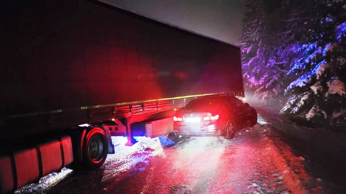 Krynica-Zdrój, ul. Sądecka- zderzenie samochodu ciężarowego oraz osobowego