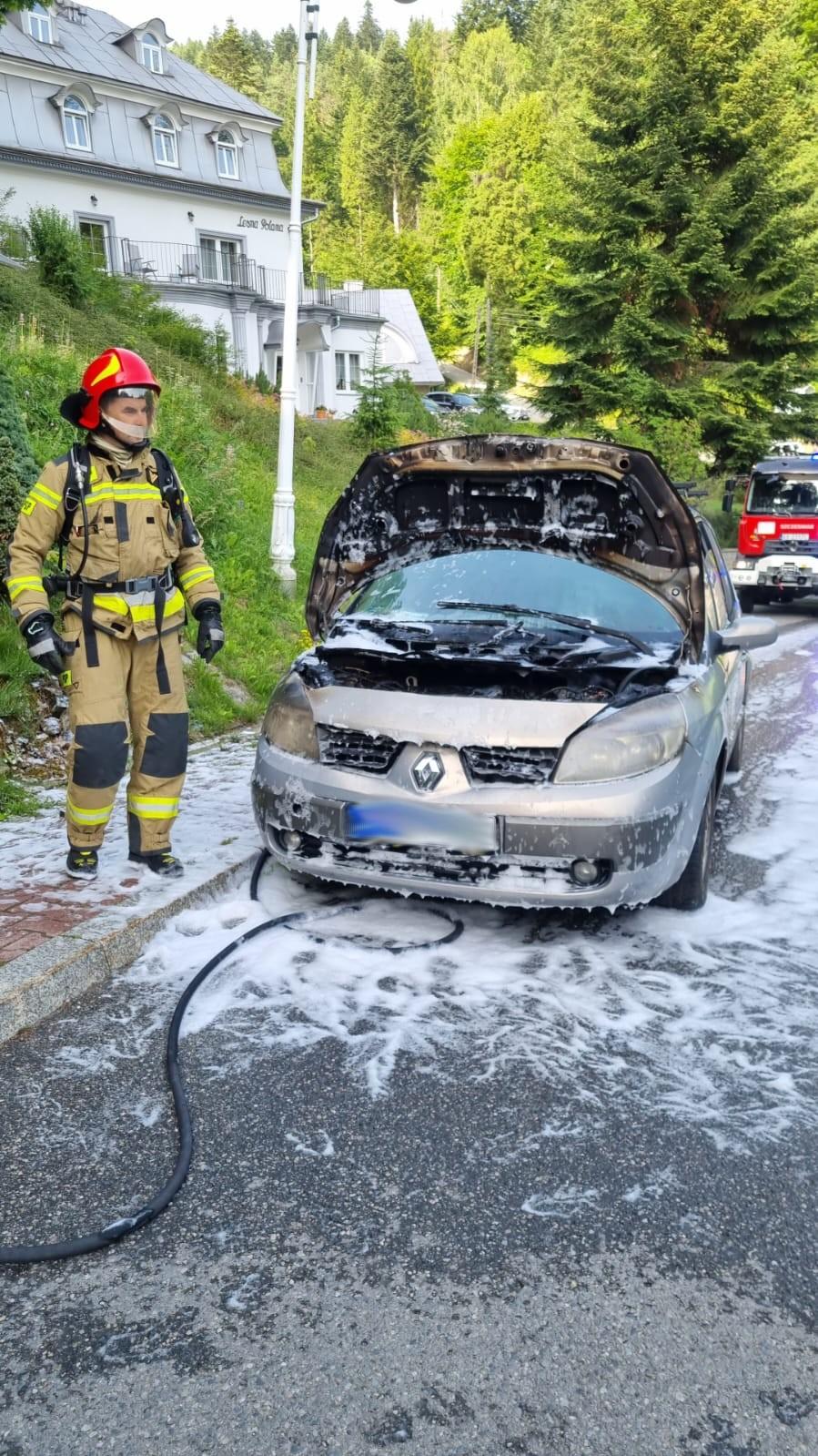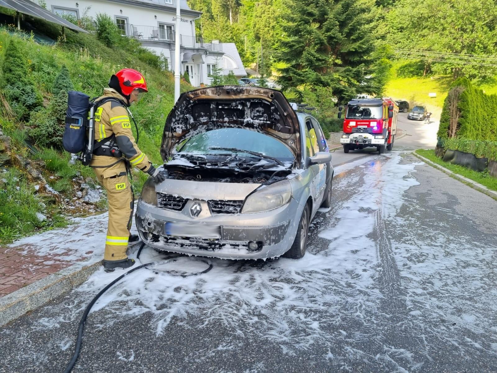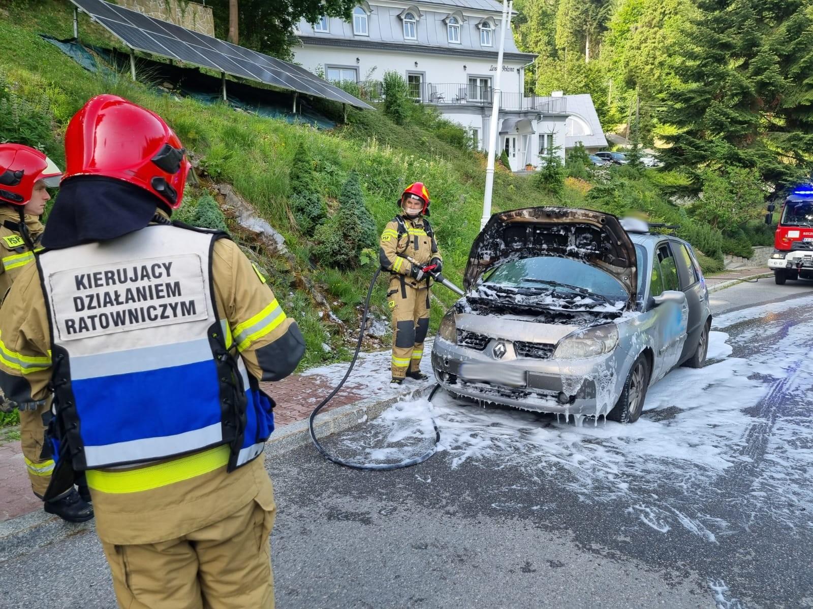 Krynica-Zdrój, ul. Wysoka - pożar samochodu osobowego