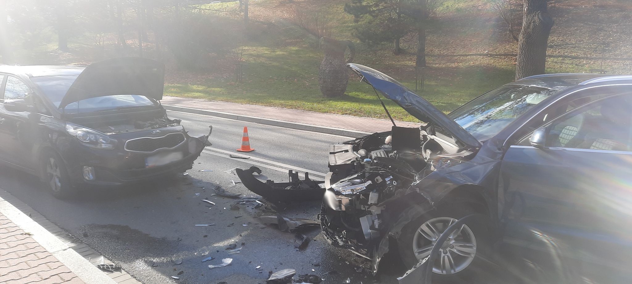 Krynica-Zdrój, ul. Zdrojowa- zderzenie trzech samochodów osobowych