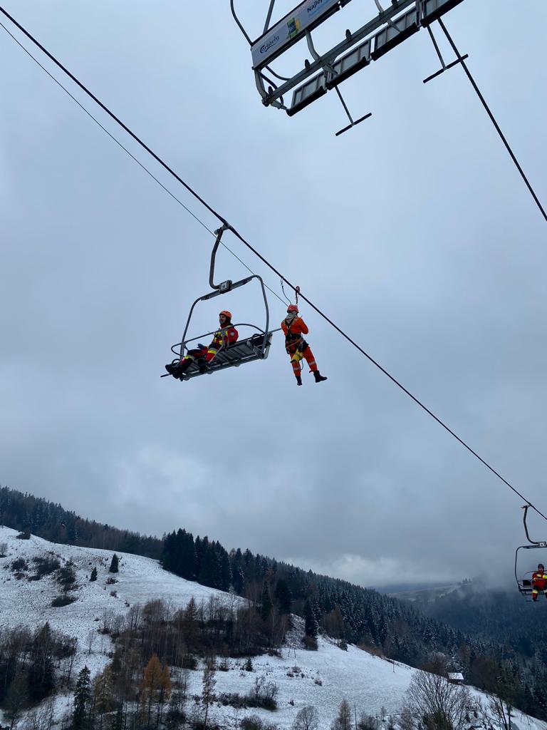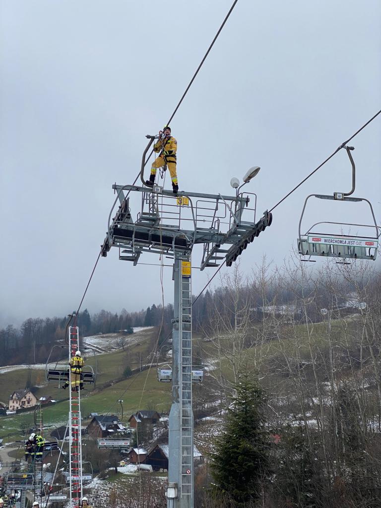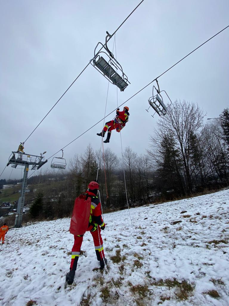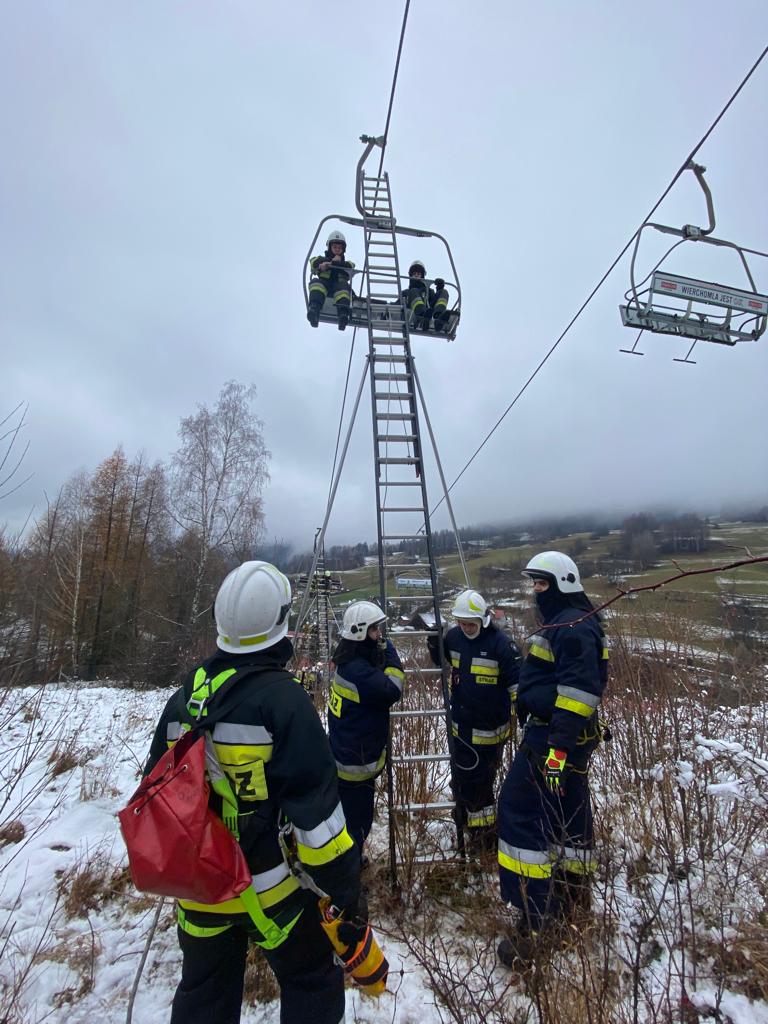 W sobotę 10 grudnia odbyły się ćwiczenia oraz szkolenia przypominające w zakresie ewakuacji z kolejek linowych dla jednostek Ochotniczych Straży Pożarnych, które procedurą przewidziane są do prowadzenia ewakuacji w przypadku awaryjnego zatrzymania kolei. Szkolenia teoretyczne zostały przeprowadzone w siedzibie JRG Krynica Zdrój oraz w remizie OSP Wierchomla Wielka. Zajęcia praktyczne odbyły się na kolejkach „Słotwinka” w Krynicy Zdroju oraz w Wierchomli Wielkiej. Podczas ćwiczeń prowadzono ewakuacje przy użyciu drabin oraz technik linowych.