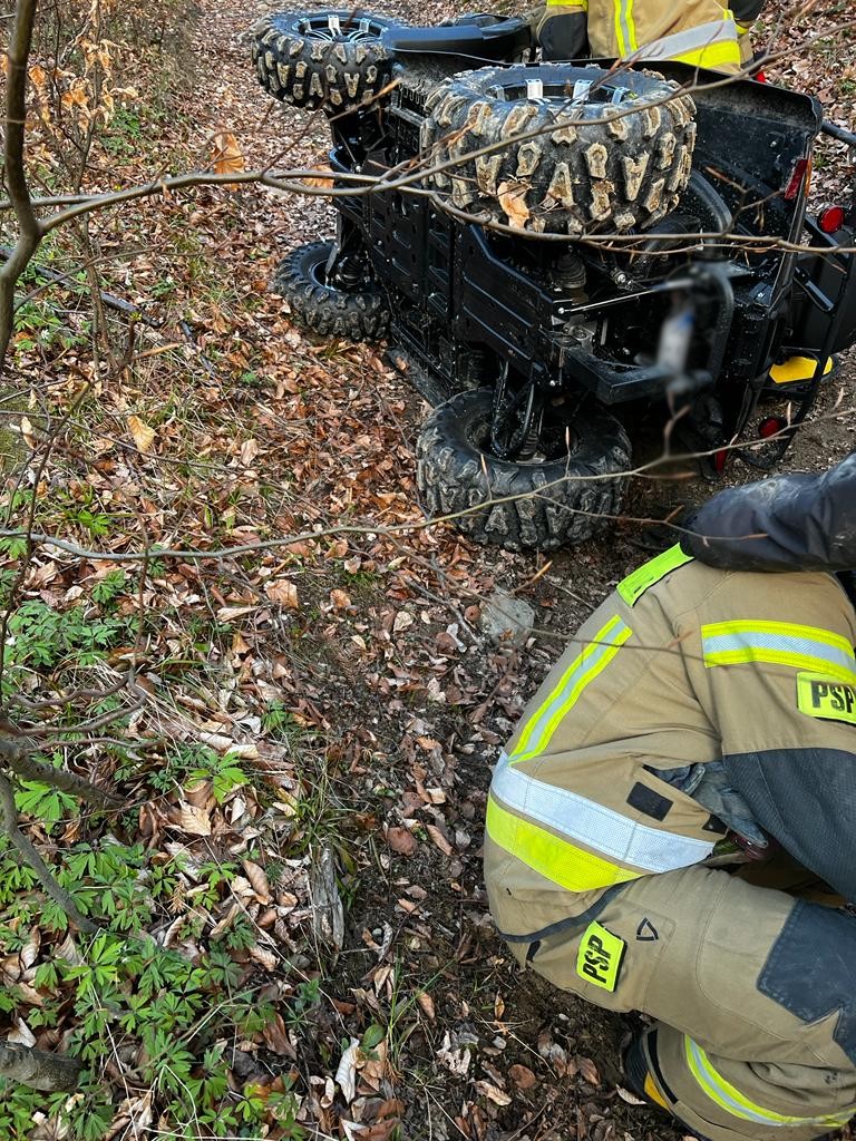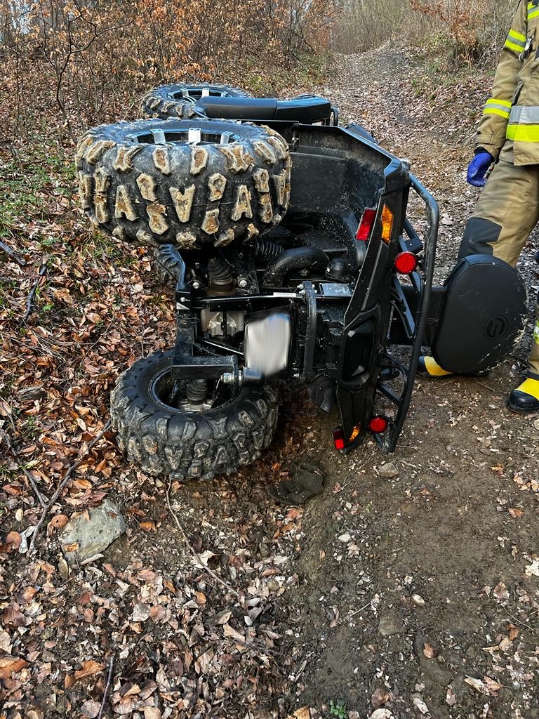 23 kwietnia o godzinie 18.39 zastępy z JRG Nr 1 w Nowym Sączu zadysponowane zostały do działań w Kurowie. Po przybyciu na miejsce zdarzenia stwierdzono, że zdarzenie miało miejsce na terenie leśnym zlokalizowanym około 200 metrów od drogi głównej. Wjazd na teren leśny ograniczony był przez zamknięty na kłódkę szlaban. Według będącej na miejscu osoby postronnej podczas spaceru po lesie znalazła ona przewróconego na prawy bok quada pod którym znajdował się 64 letni przytomny mężczyzna. Mężczyzna ze względu na wagę pojazdu oraz jego ułożenie nie był w stanie samodzielnie wydostać się spod pojazdu. Kierujący znajdował się w ziemnej koleinie. Kierujący ułożony był głową w dół zbocza. Mężczyzna był przytomny w zachowanym, logicznym kontakcie słownym, nie uskarżał się na żadne dolegliwości bólowe. Z quada nie nastąpił wyciek płynów eksploatacyjnych. W chwili przeprowadzania ewakuacji kierującego quadem na miejsce przybyła karetka Pogotowia ratunkowego. Działania zastępów straży polegały na dotarciu pieszo na miejsce zdarzenia. Rozcięto za pomocą nożyc do prętów kłódkę stanowiącą zamknięcie szlabanu w celu umożliwienia wjazdu karetki oraz w razie potrzeby lekkiemu samochodowi ratowniczemu. Zabezpieczono miejsce zdarzenia. Rozpoznano stan poszkodowanego. Podniesiono przy pomocy sił fizycznych ratowników quada oraz ewakuowano kierującego. Kierującego przekazano ratownikom karetki Pogotowia Ratunkowego. Udzielono pomocy rodzinie mężczyzny w postawieniu quada na koła. Po przeprowadzeniu badań na miejscu zdarzenia kierujący quadem nie wyraził zgody na transport do szpitala i pozostał na miejscu zdarzenia. Działania strażaków trwały niespełna godzinę.