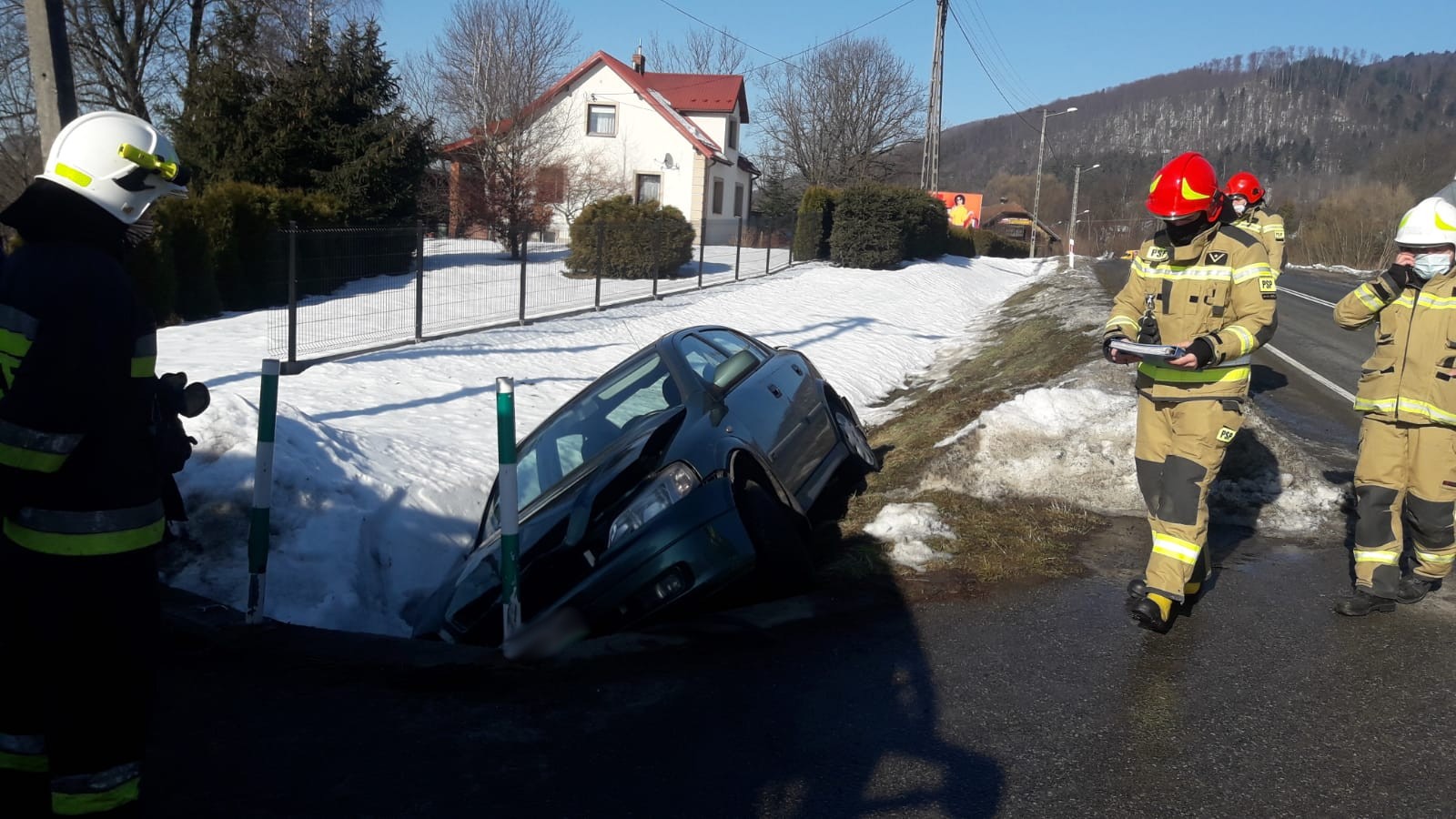 22 lutego około godziny 9.21 zastępy z JRG w Krynicy Zdroju oraz OSP Łabowa zadysponowane zostały do działań w Łabowej. Po przybyciu na miejsce zdarzenia ustalono, że samochód osobowy marki Opel Astra zjechał z drogi i uderzył w przepust. Pojazdem podróżowała jedna osoba dorosła, która opuściła pojazd o własnych siłach i nie uskarżała się na żadne dolegliwości. Pojazd znajdował się całkowicie poza jezdnią w przydrożnym rowie. Z pojazdu nie nastąpiły wycieki. Działania strażaków polegały na zabezpieczeniu miejsca zdarzenia oraz odłączeniu klem akumulatora. Kierujący nie potrzebował pomocy i oświadczył, że we własnym zakresie poinformował pomoc drogową i sam zabezpieczy pojazd. Na tym działania straży pożarnej zakończono.
