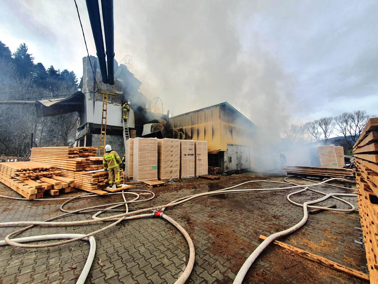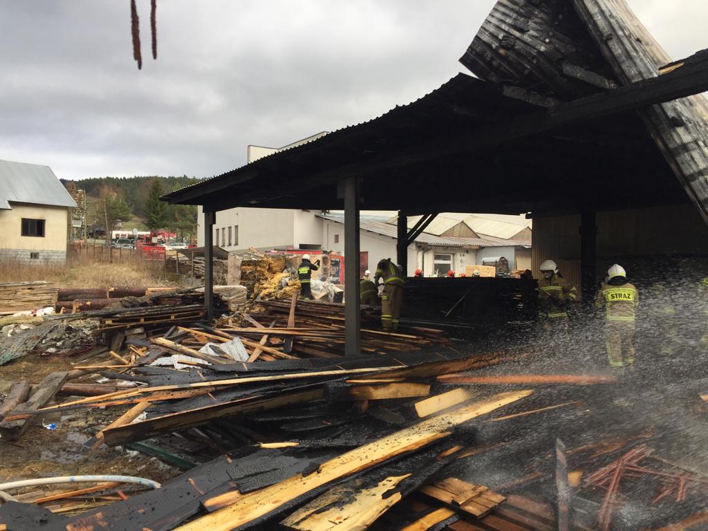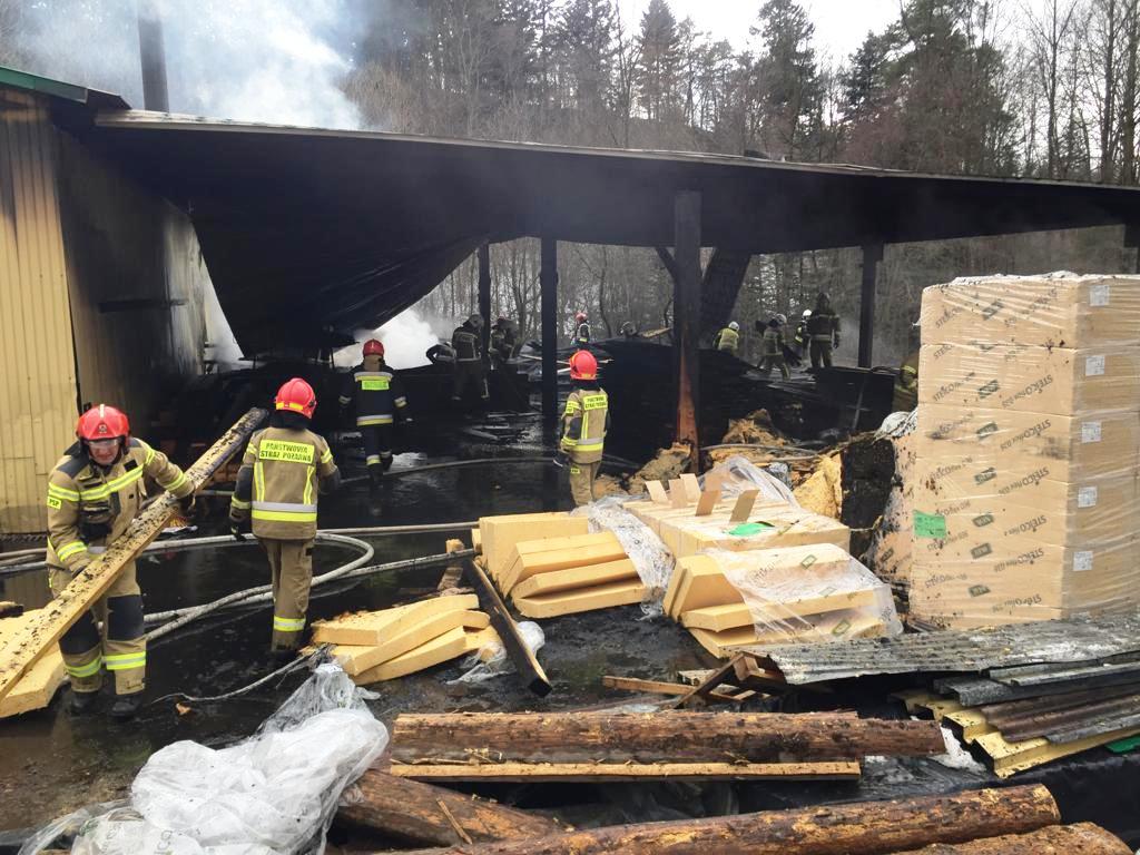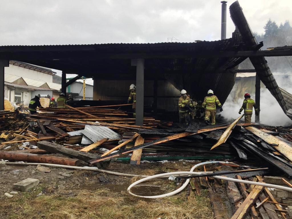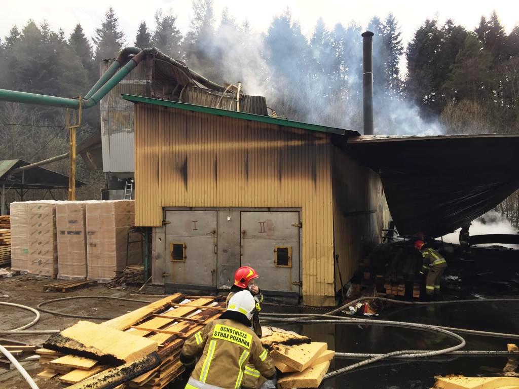 Łabowa – pożar duży w zakładzie drzewnym