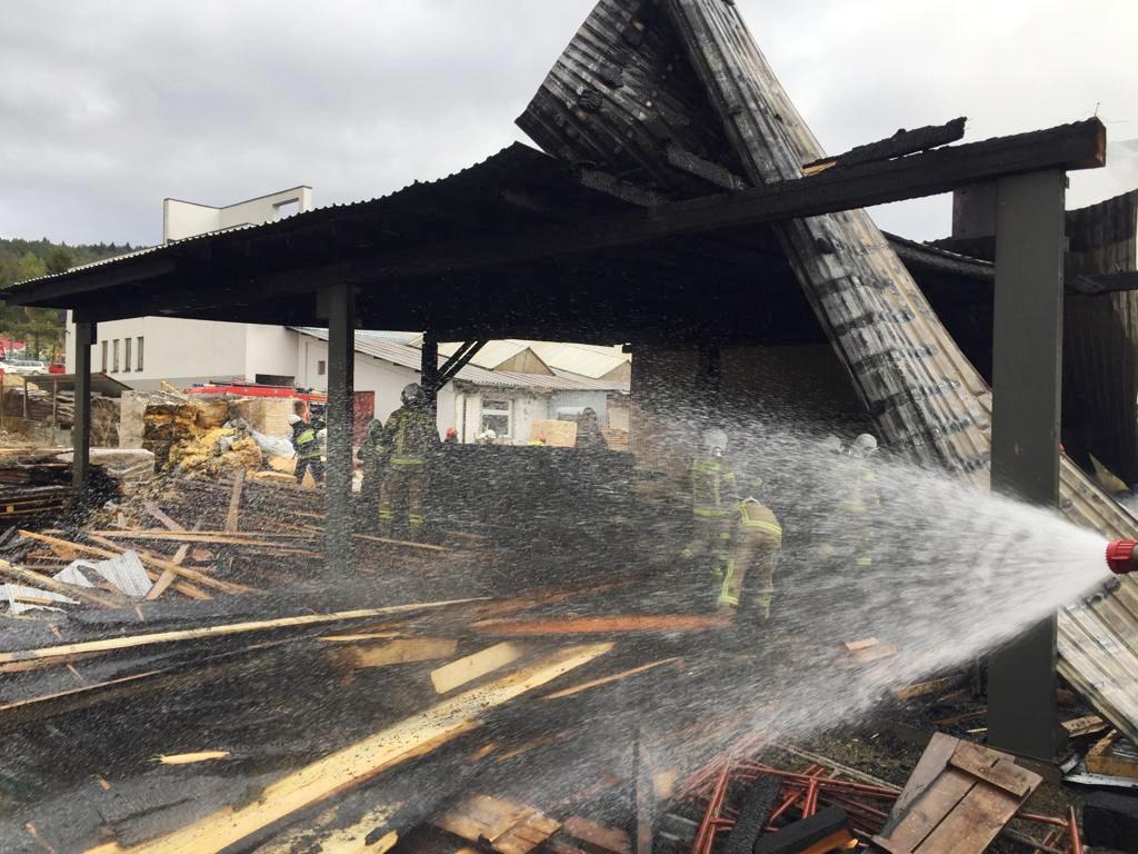5 kwietnia o godzinie 15.14 zastępy z JRG w Krynicy Zdroju, JRG nr 1 w Nowym Sączu, OSP Łabowa, OSP Nowa Wieś oraz OSP Nawojowa zadysponowane zostały do działań w Łabowej. Po przybyciu na miejsce zdarzenia ustalono, że palił się składowane produkty gotowe pod wiatą zakładu przetwórstwa drzewnego. Wiata znajdowała się w zabudowie szeregowej połączonej z suszarnią drewna, kotłownią i silosami na trociny. Pożar szybko się rozprzestrzeniał na pozostałe części zakładu w tym na silosy z trocinami. Działania zastępów straży polegały na zabezpieczeniu miejsca zdarzenia, odłączeniu zasilania energetycznego w budynku oraz podaniu prądów wody na palący się materiał składowany pod wiatą i samą wiatę. Wykonano zasilanie wodne z punktu czerpania wody zbudowanego na pobliskiej rzece. Po przybyciu na miejsce zdarzenia dodatkowych zastępów podano kolejne prądy wody. Ewakuowano mienie znajdujące się pod wiatą, po uprzednim opanowaniu tam pożaru. Wygaszono piec znajdujący się w kotłowni. Po lokalizacji pożaru przystąpiono do opróżniania trocin z silosów i dogaszania zarzewi ognia. Usuwano z wiaty składowane produkty w bezpieczne miejsce. Sprawdzono kamerą termowizyjną przyległe pomieszczenia pod kątem zagrożenia pożarowego, którego nie stwierdzono. Pożar gasiło 10 zastępów i 30 strażaków. Przyczyna pożaru jest nieustalona.