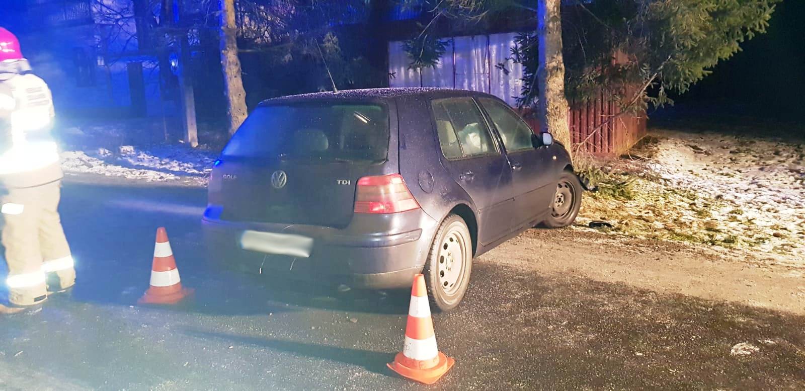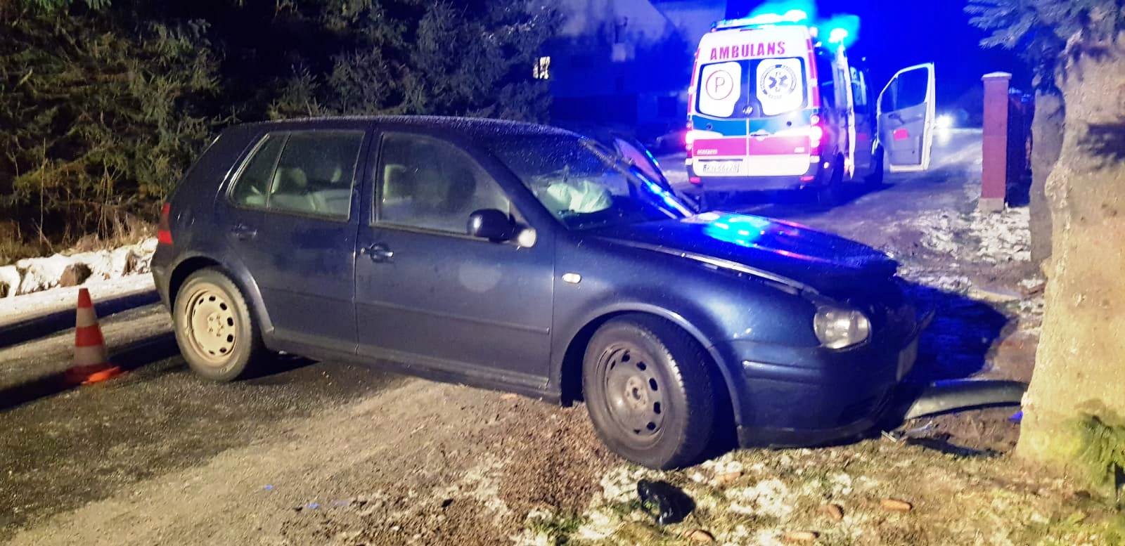 Łabowa- samochód osobowy wypadł z drogi i uderzył w drzewo